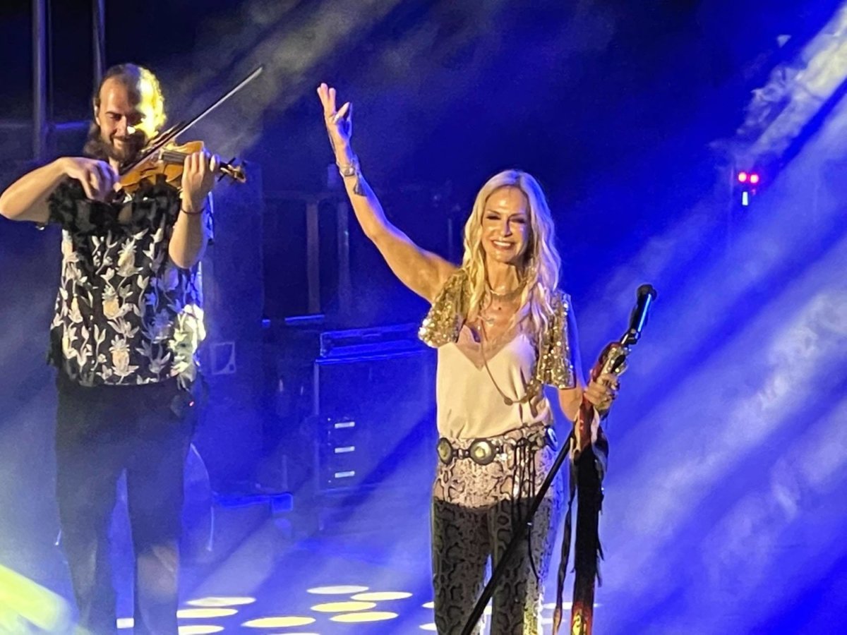Η μπάντα δεν έλειπε στιγμή από δίπλα της… Εκείνη χόρευε με τους μουσικούς της και το κέφι… χτύπησε κόκκινο. Μάλιστα, τραγουδώντας «Τα Ριάλια» απευθύνθηκε και στον δήμαρχο θέλοντας να μάθει αν παρευρίσκεται στη συναυλία…