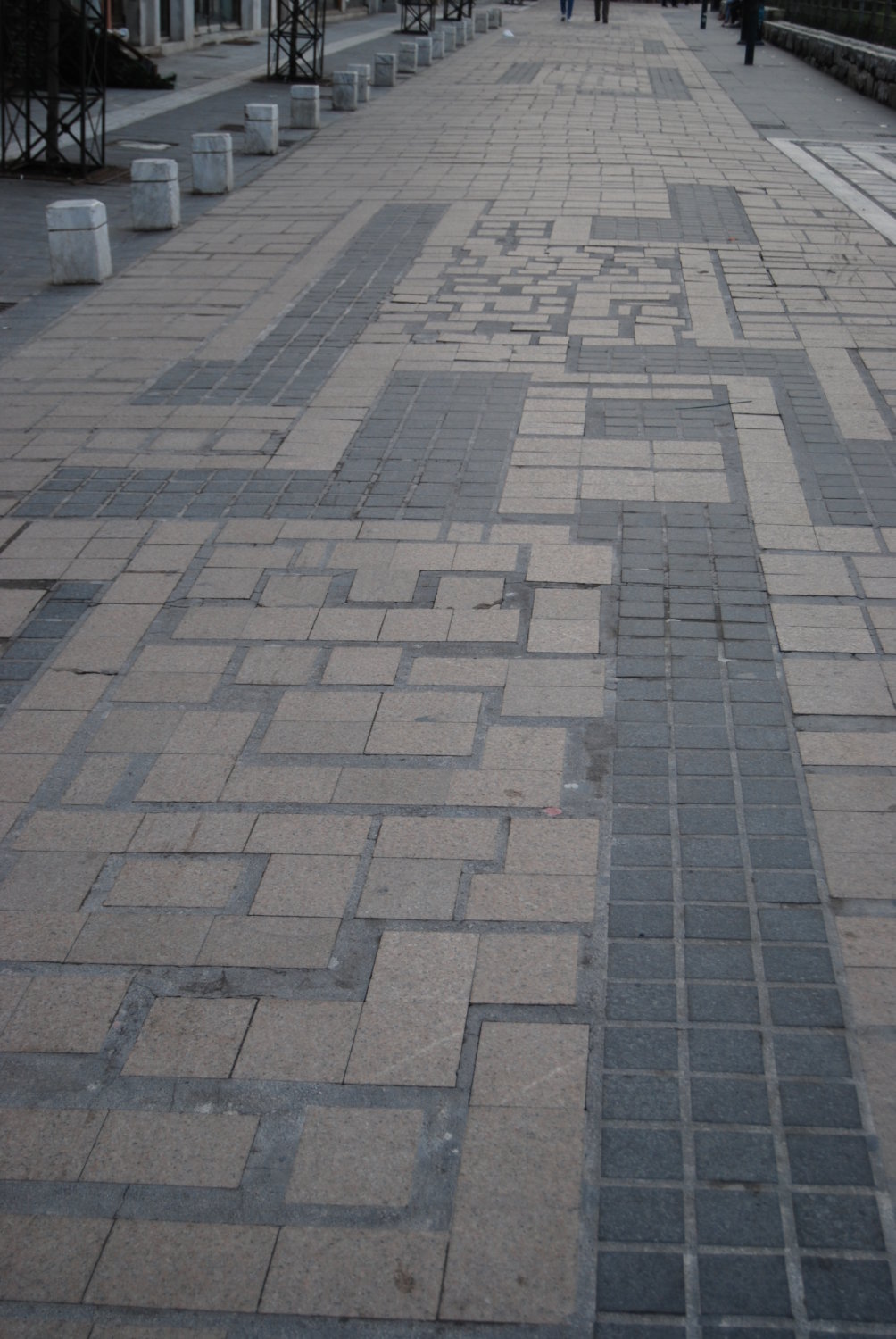 Στον πεζόδρομο της οδού Βενιζέλου (2005-2006) συναντούμε την ολοκλήρωση του ολιστικού έργου της γλύπτριας Νέλλας Γκόλαντα. Τα σχέδια των επιστρώσεων με τα ένθετα μαρμάρινα γεωμετρικά μοτίβα, παραπέμπουν σε κατόψεις αρχαίων κατοικιών της Λάρισας.