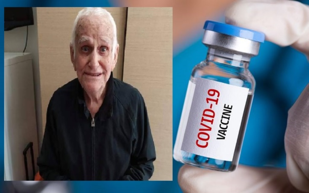 Είπε «ναι» στο εμβόλιο ο Δημήτρης Κάλμπαρης, ετών 105, γεμίζοντας χαμόγελα και αισιοδοξία τους γύρω του.