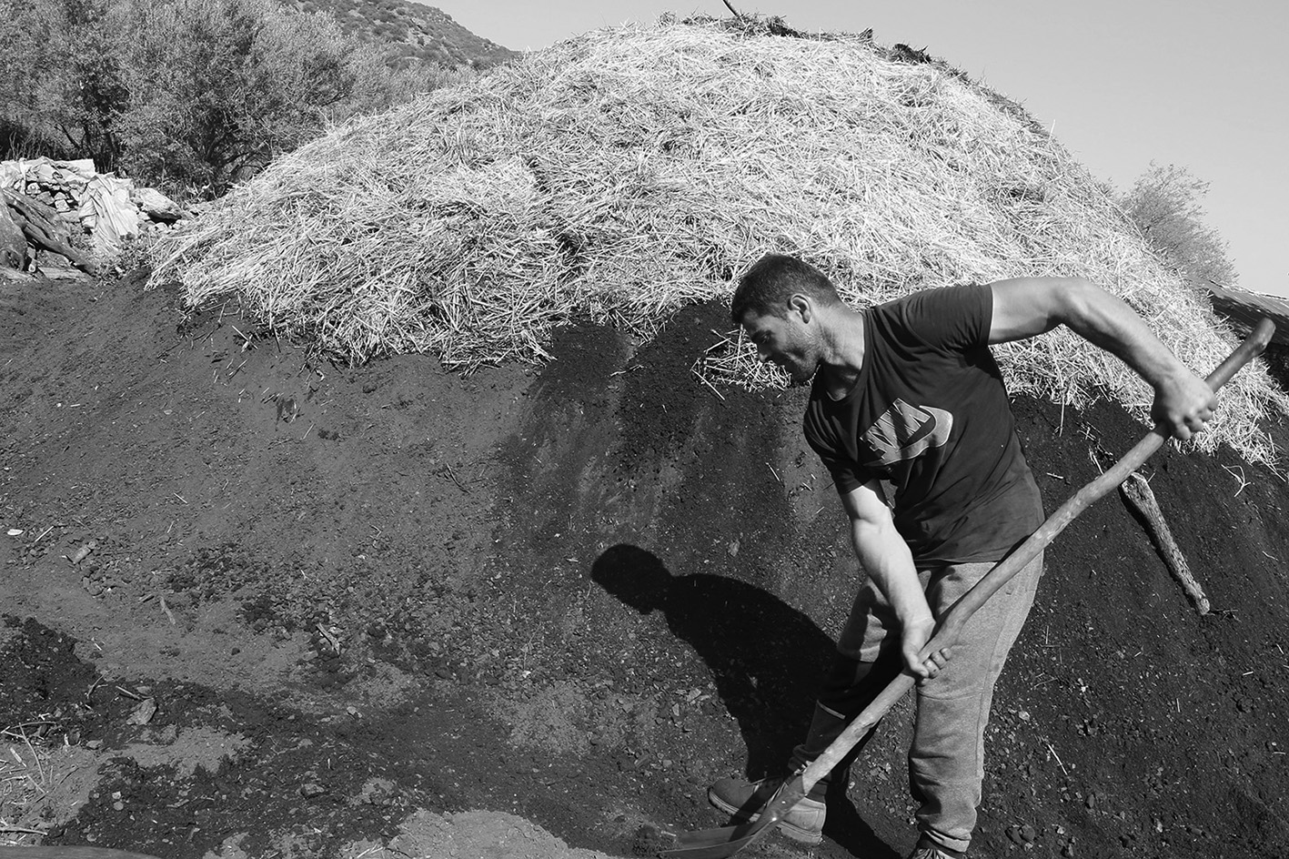 Άνθρωποι μέσα στο λιοπύρι. Μαυρισμένοι και κουρασμένοι. Διψασμένοι και υπομονετικοί, μοχθούν για τον άνθρακα του κάμπου. Για το κάρβουνο του χειμώνα… Του Πάσχα, των Χριστουγέννων, της γιορτής και της χαράς. Του γλεντιού και της μάζωξης.