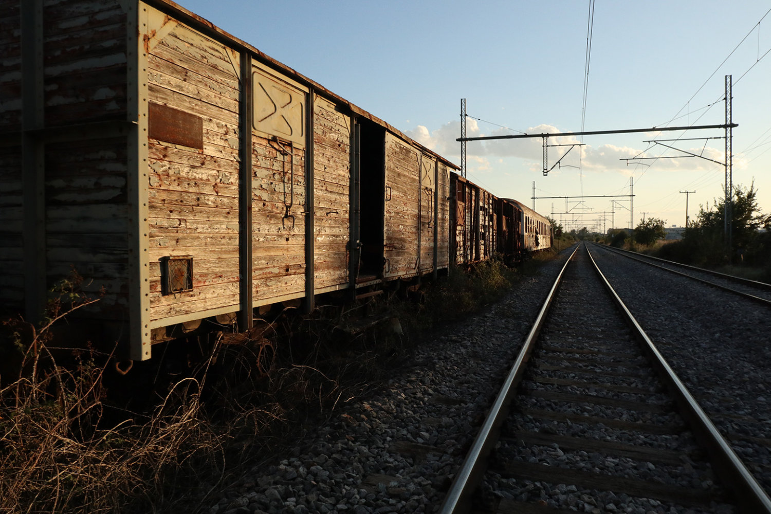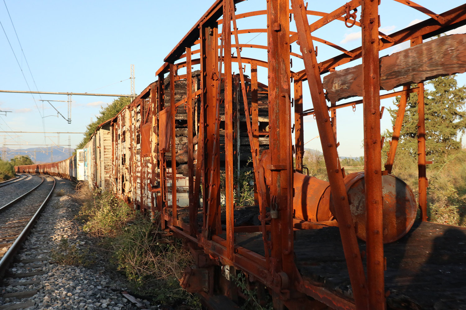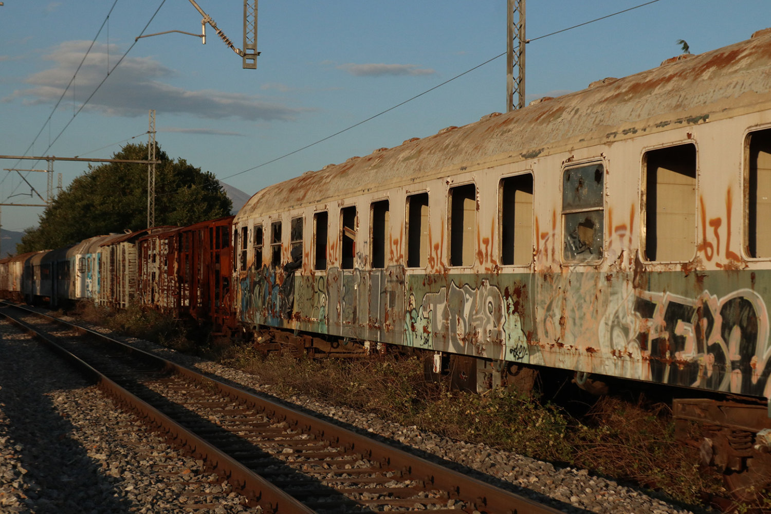 Τα τρένα έξω από τη Λάρισα αφήνουν την τελευταία τους πνοή. Γερνούν και πεθαίνουν. Φεύγουν όπως και οι άνθρωποι. Σκουριάζουν και αποσυντίθεται χρόνο με το χρόνο.