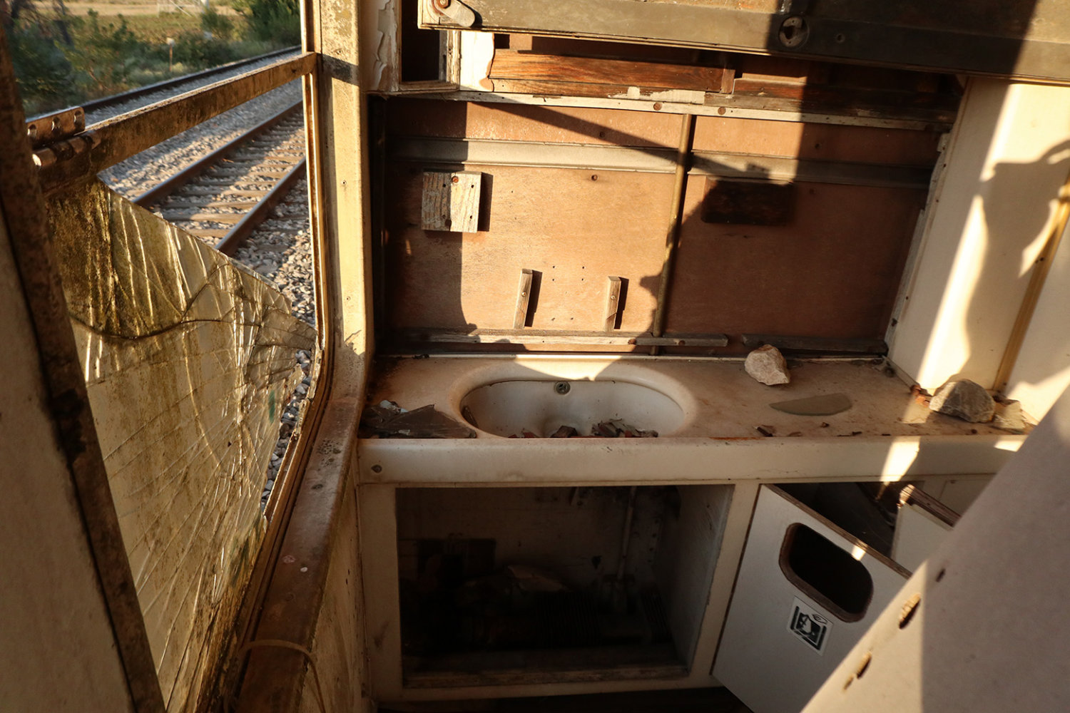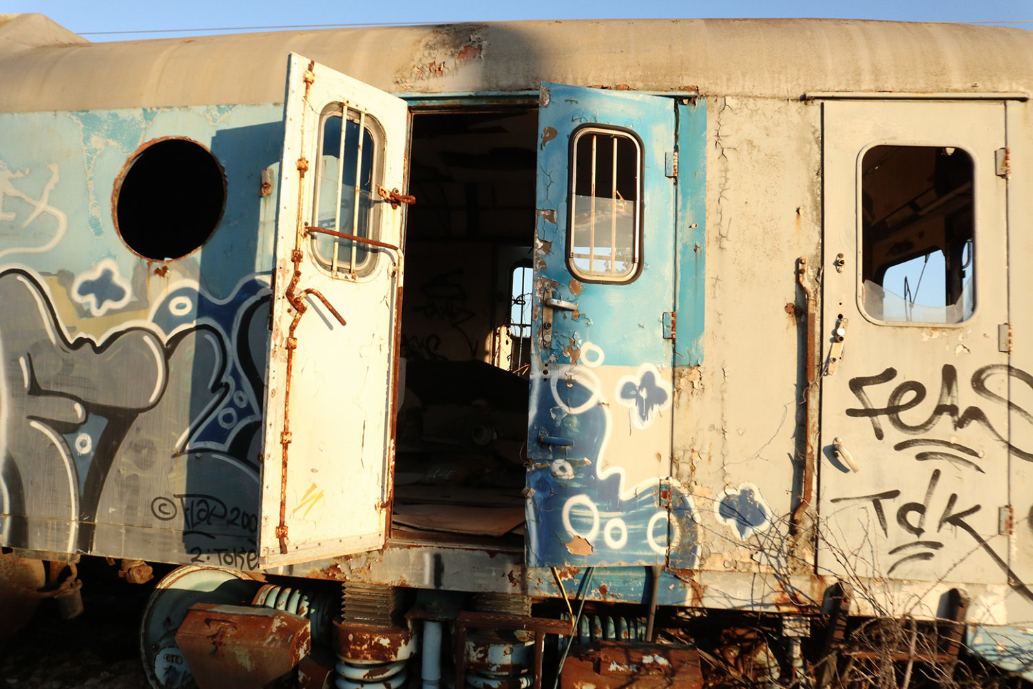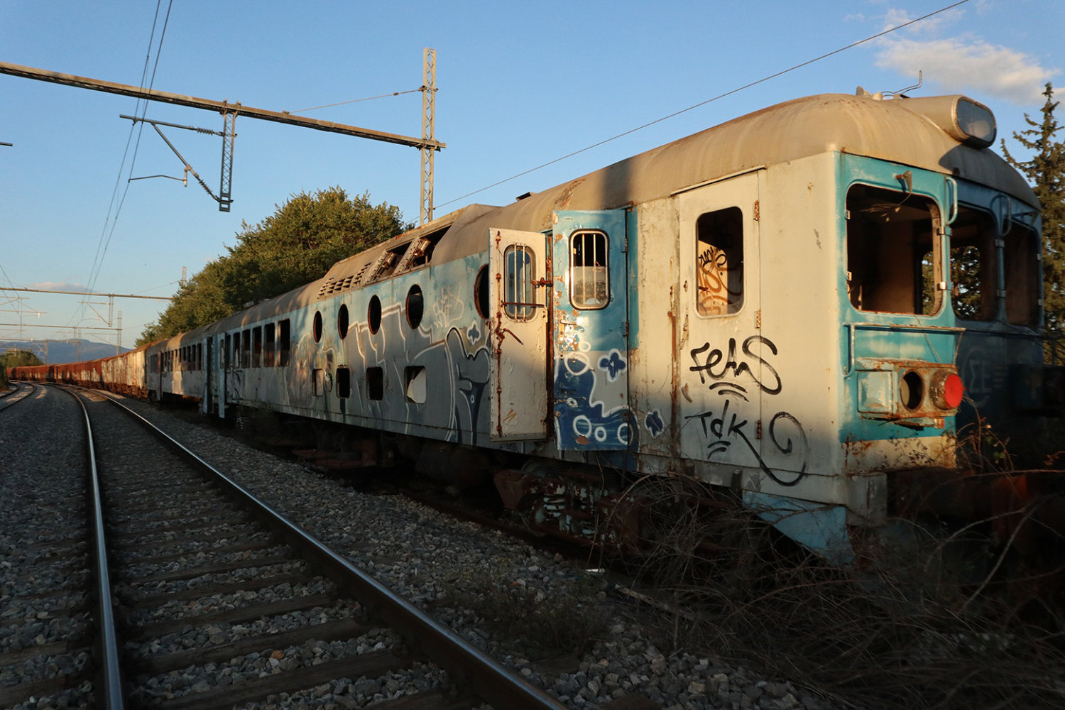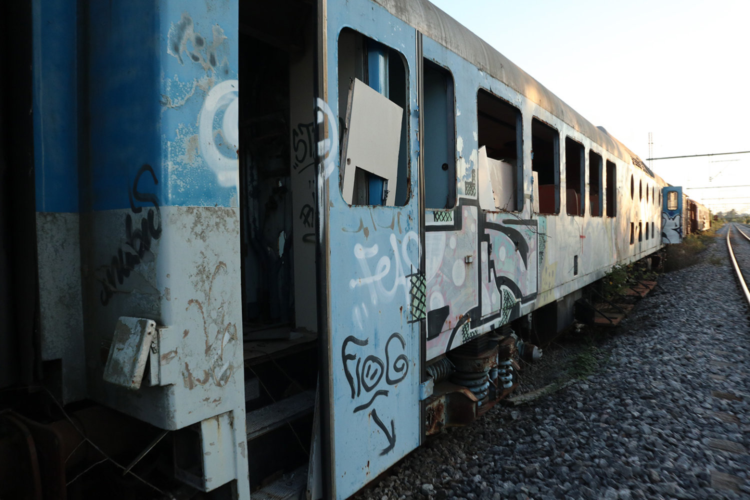 Τα τρένα έξω από τη Λάρισα αφήνουν την τελευταία τους πνοή. Γερνούν και πεθαίνουν. Φεύγουν όπως και οι άνθρωποι. Σκουριάζουν και αποσυντίθεται χρόνο με το χρόνο.