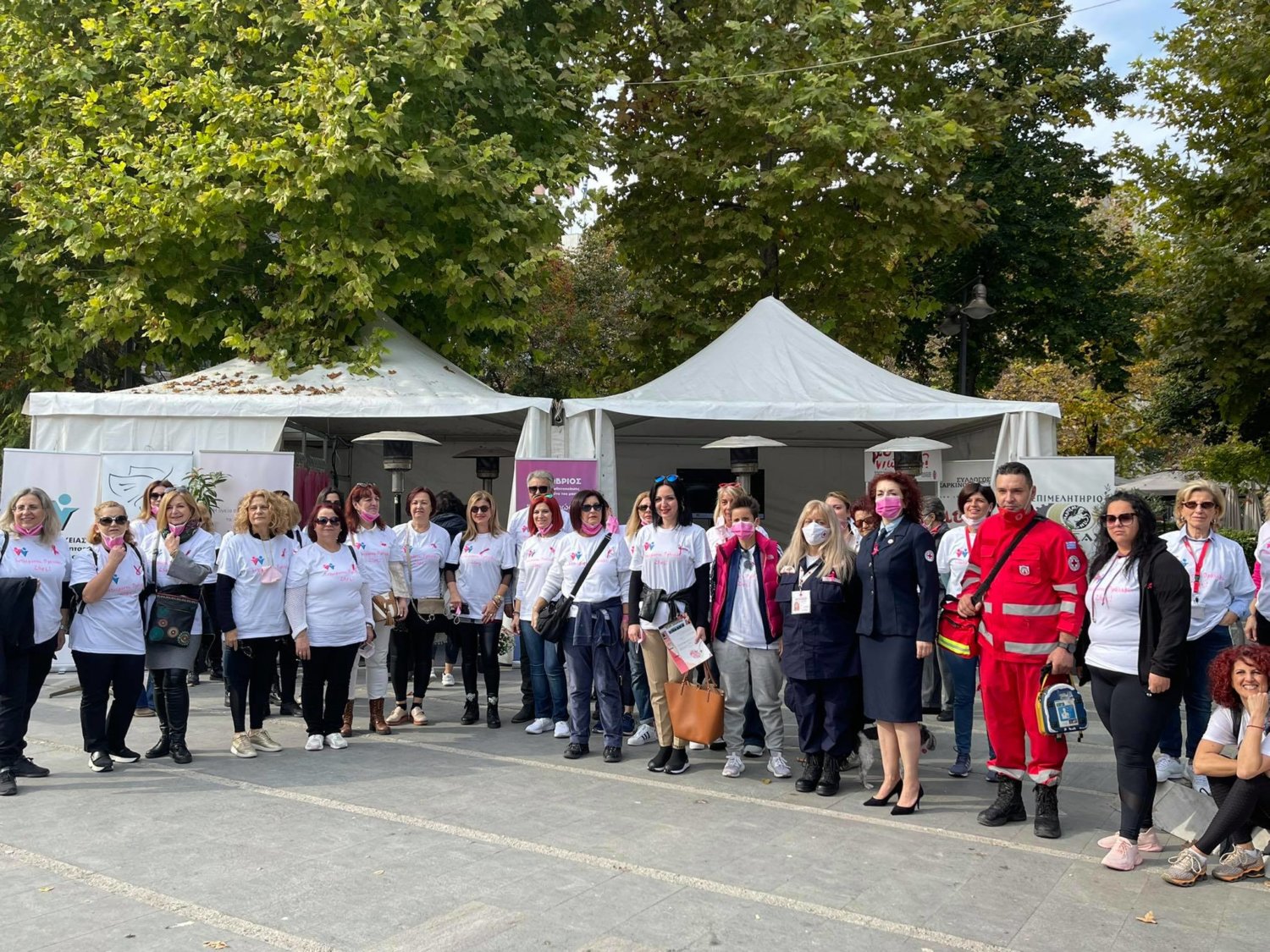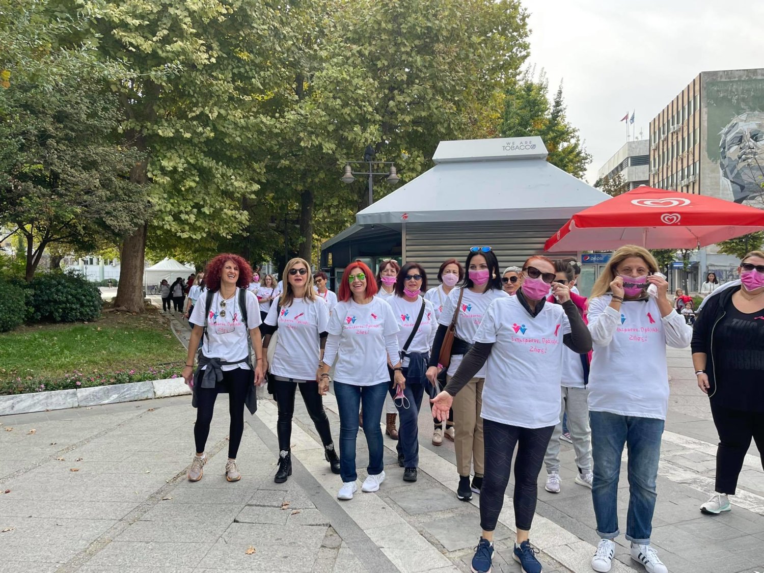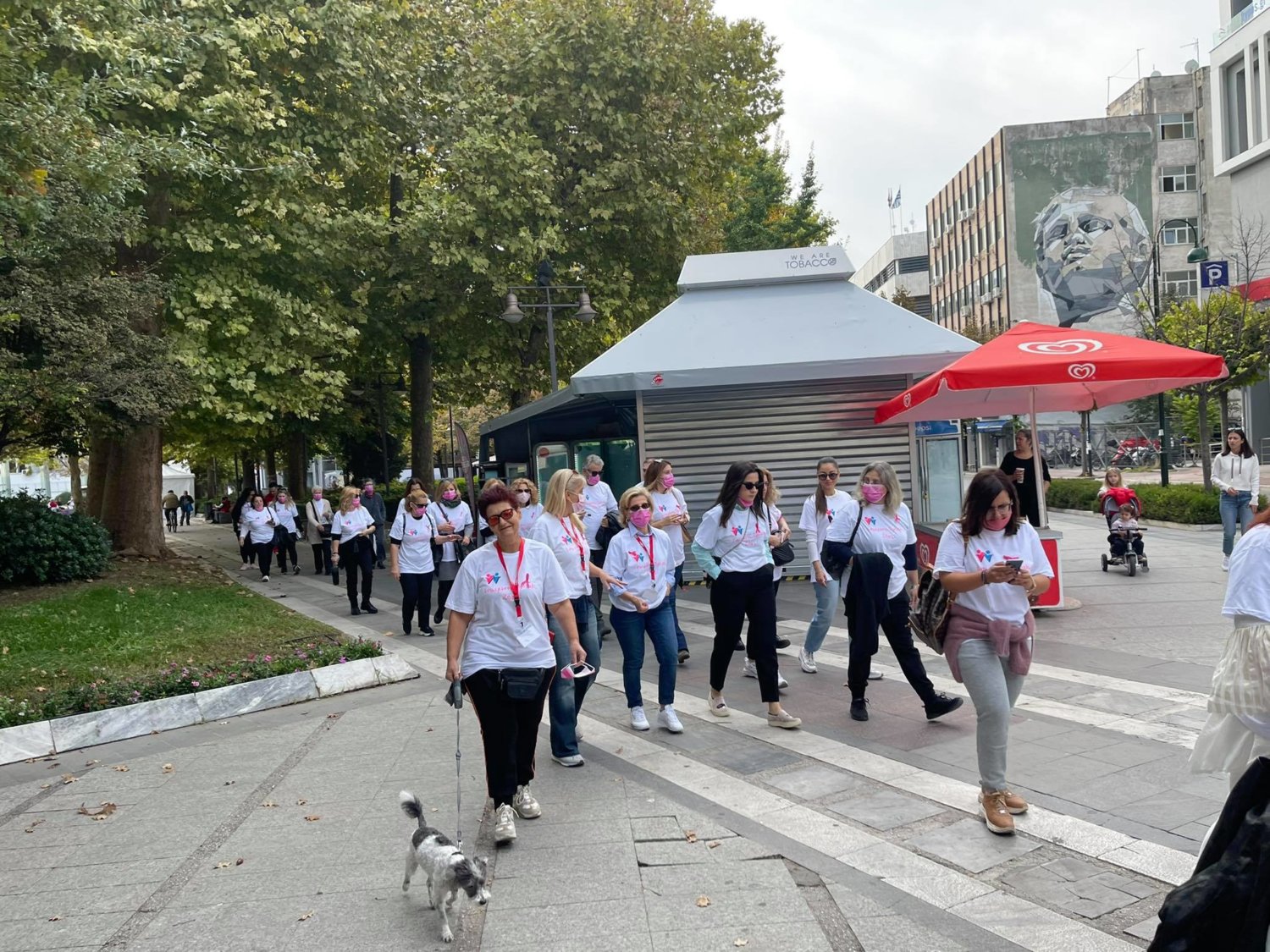 Στο πλαίσιο της καμπάνιας ενημέρωσης και πρόληψης του καρκίνου του μαστού που πραγματοποιείται στην Κεντρική Πλατεία της πόλης ξεκίνησε σήμερα λίγο μετά τις 11 το πρωί η δράση «Περπατάμε όλοι μαζί».