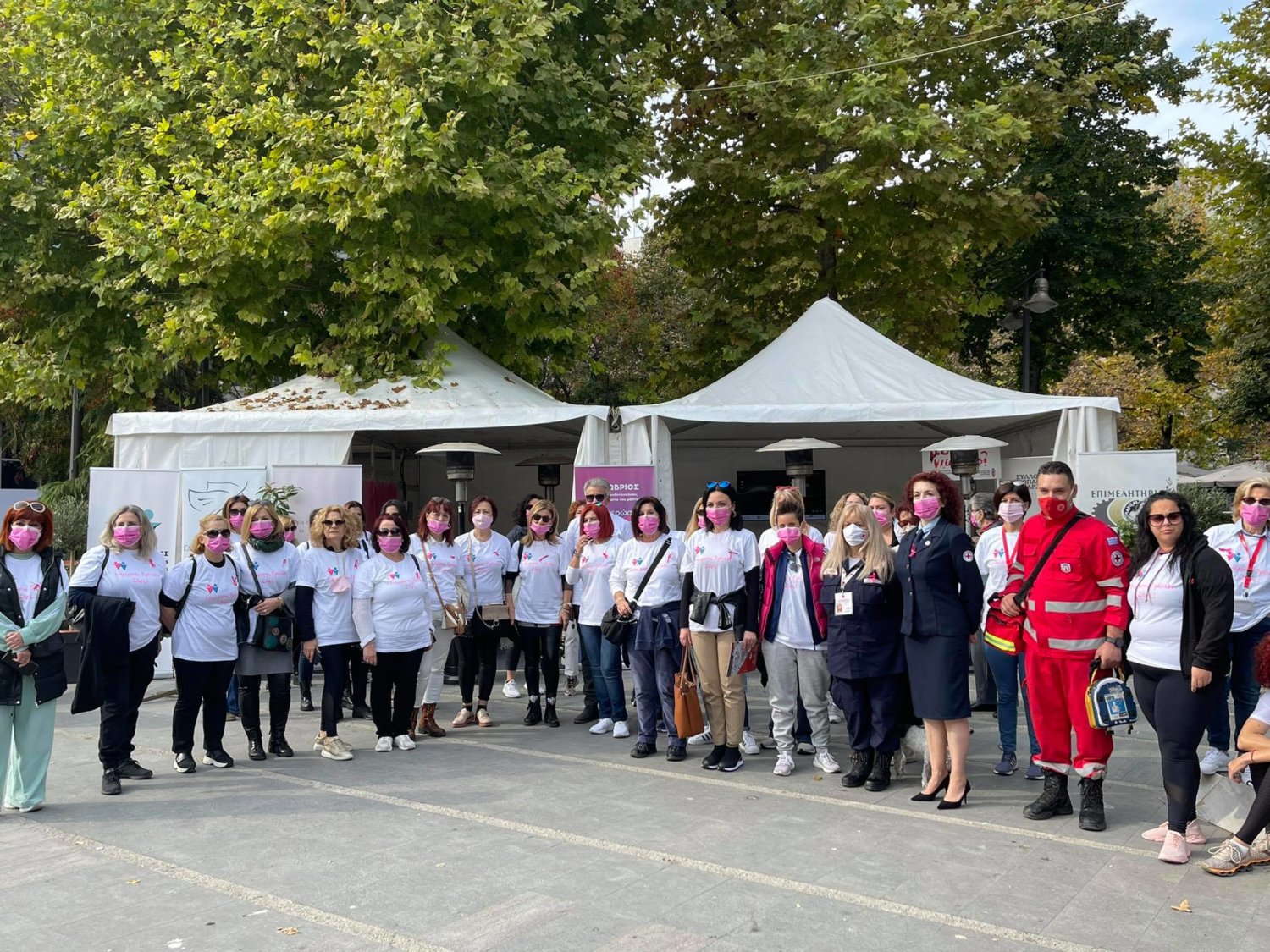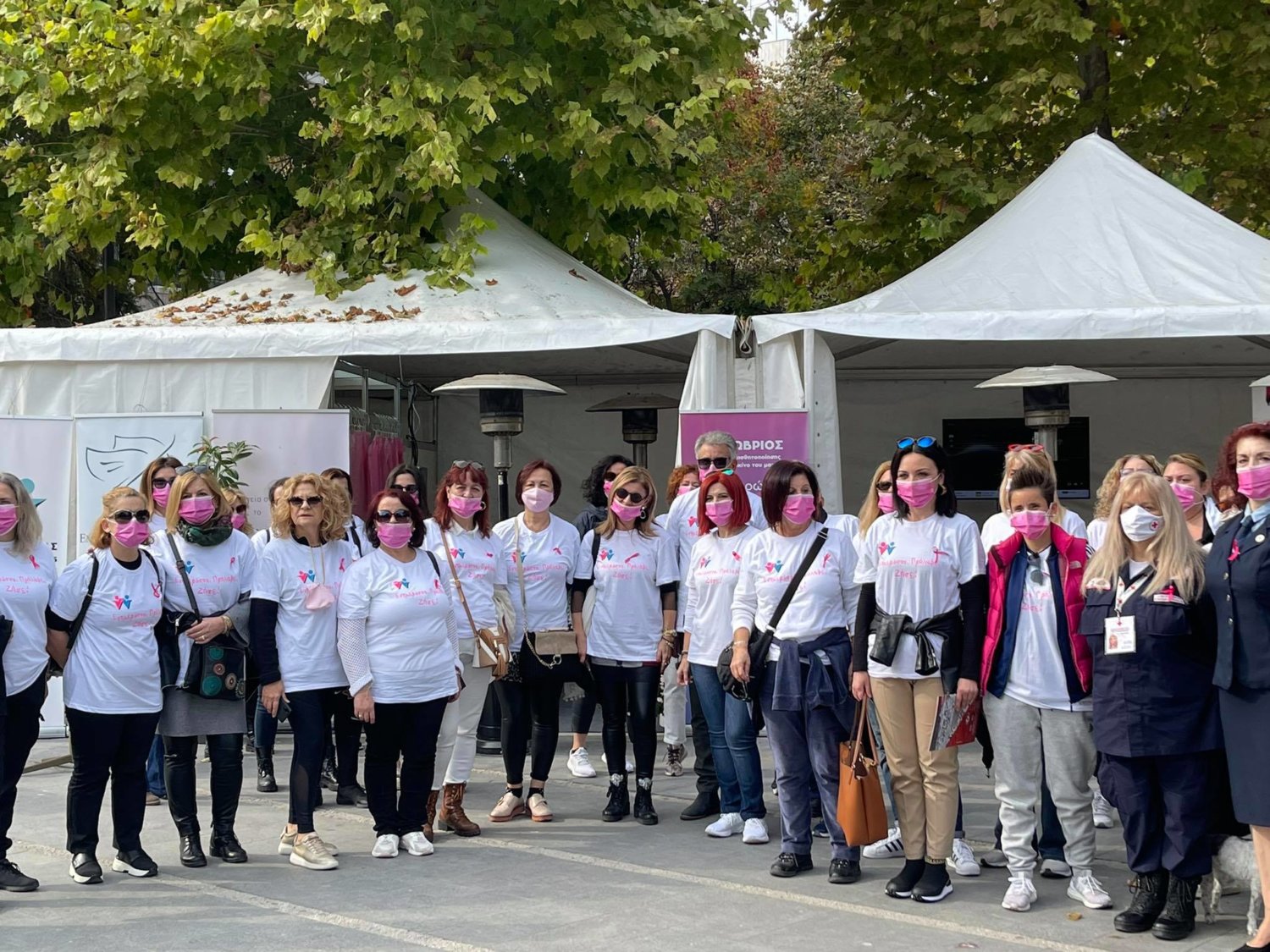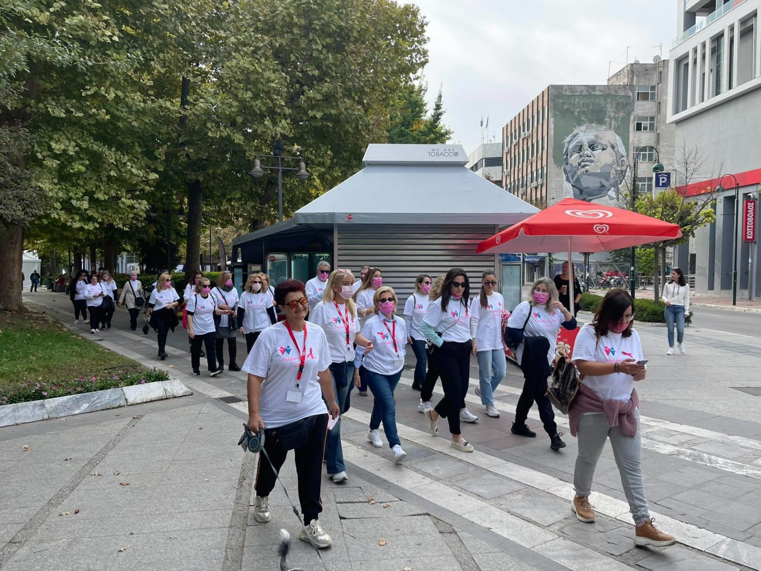 Στο πλαίσιο της καμπάνιας ενημέρωσης και πρόληψης του καρκίνου του μαστού που πραγματοποιείται στην Κεντρική Πλατεία της πόλης ξεκίνησε σήμερα λίγο μετά τις 11 το πρωί η δράση «Περπατάμε όλοι μαζί».