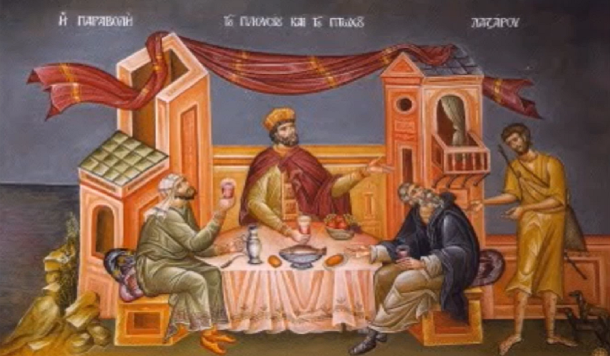 Ούτε που νοιαζόταν καθώς έβλεπε στην εξώπορτά του εκείνον τον φτωχό Λάζαρο παραπεταμένο και γεμάτο πληγές, που ήθελε να χορτάσει από των “ψιχίων των πιπτόντων” από το τραπέζι του πλουσίου. Αλλά σαν να μην έφτανε αυτό, καθώς ήταν σχεδόν γυμνός, έρχονταν οι σκύλοι κι έγλυφαν τις πληγές του. Όμως ο Λάζαρος δεν έβγαζε από το στόμα του παράπονο εναντίον του πλουσίου ή του Θεού. Αντίθετα, πόσο ανάλγητος ήταν ο πλούσιος! Ο πλούτος τον έκανε δούλο στη σάρκα, αδιάφορο για κάθε φτωχό γύρω του.