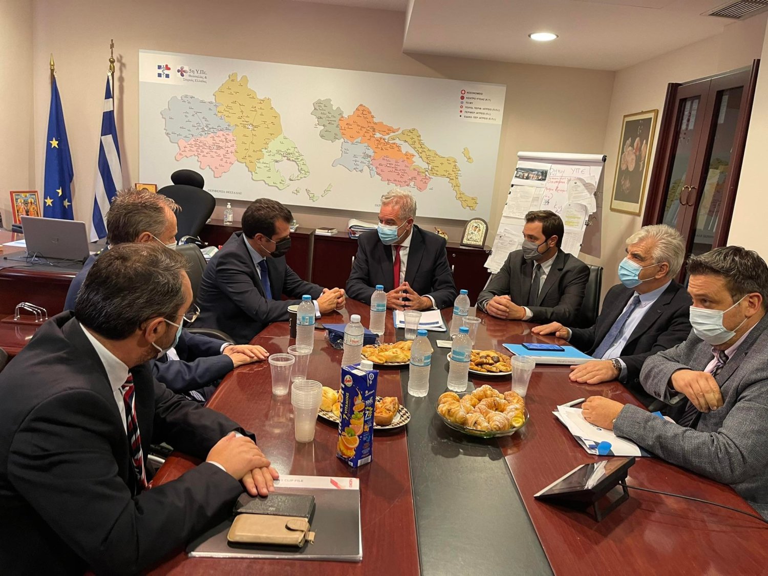 Στιγμιότυπα από την άφιξη του κ. Πλεύρη, όπως και από την σύσκεψη: