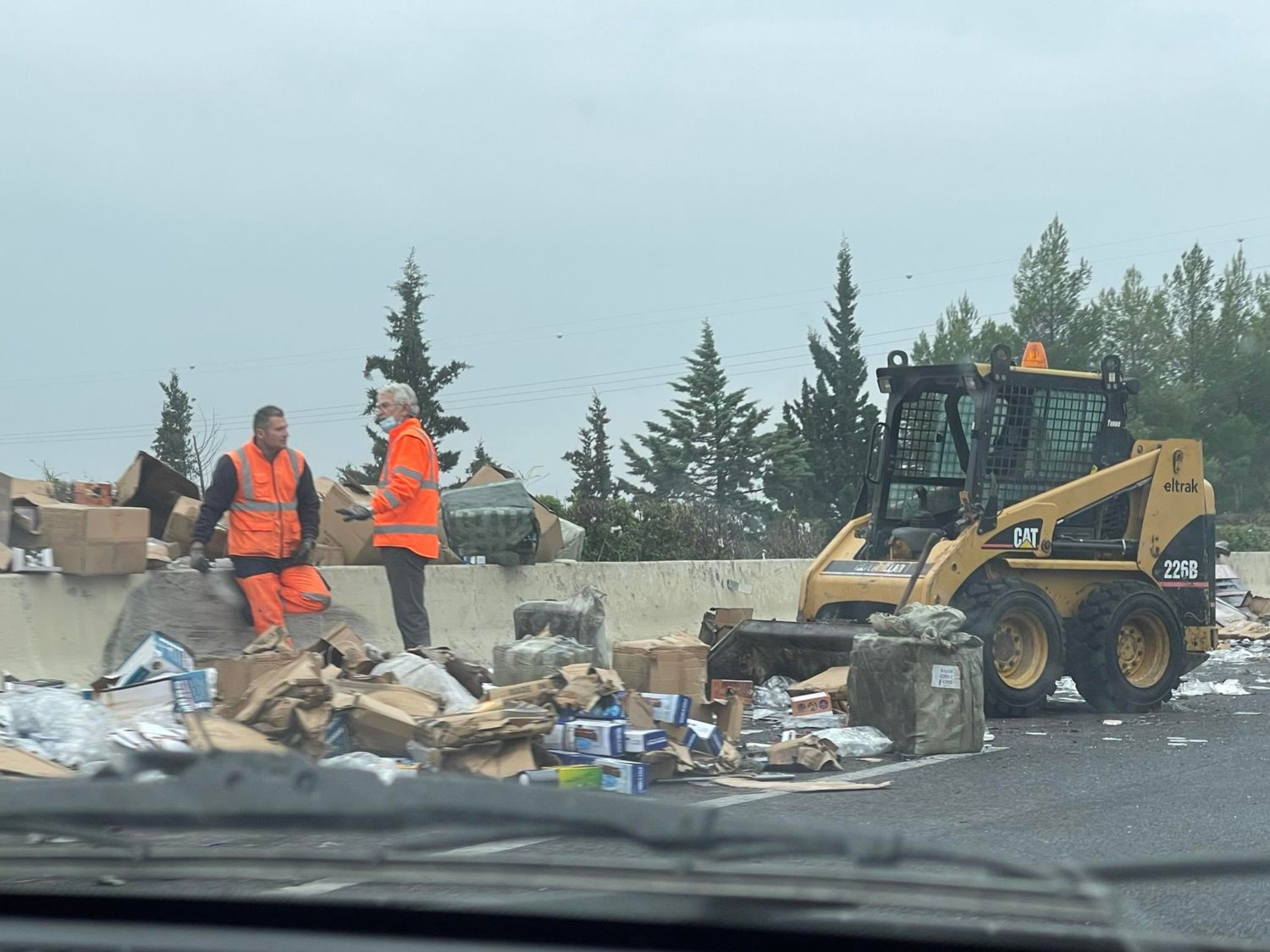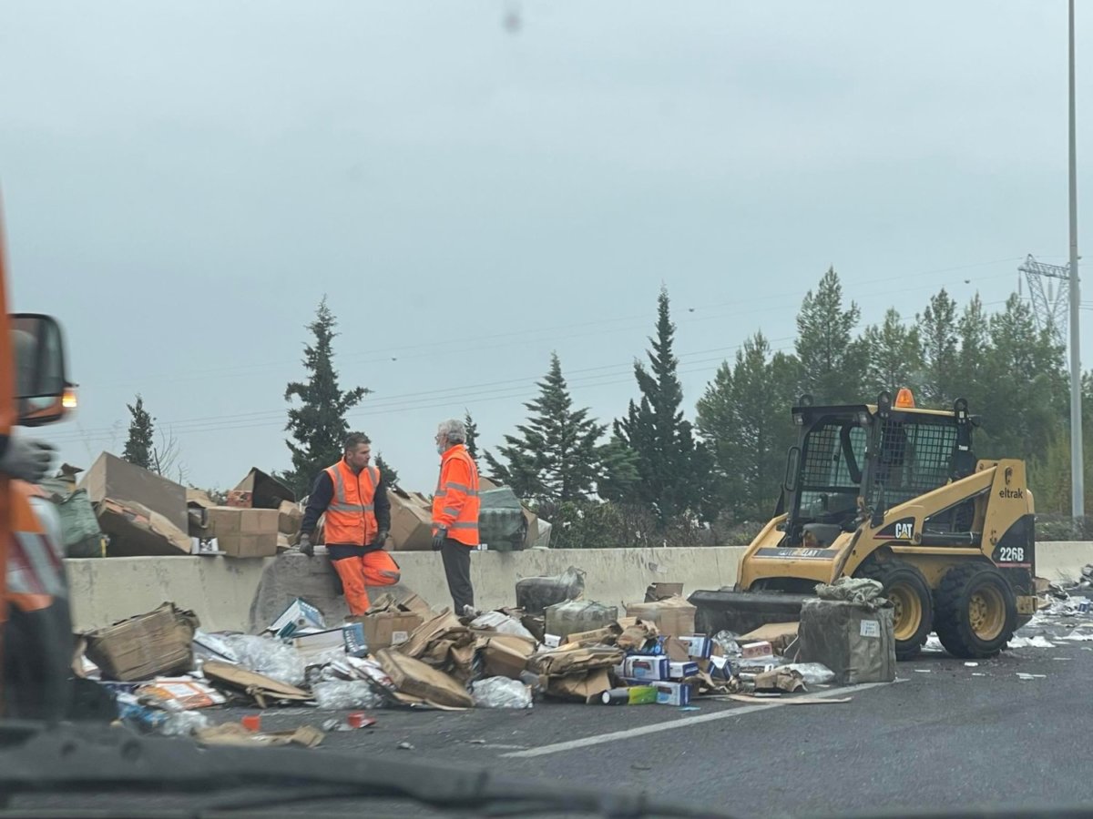 Χαρακτηριστικές είναι οι εικόνες από το σημείο στην Εθνική Οδό όπου έγινε το ατύχημα: