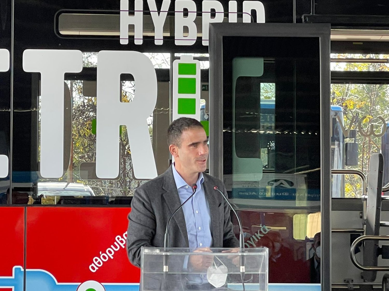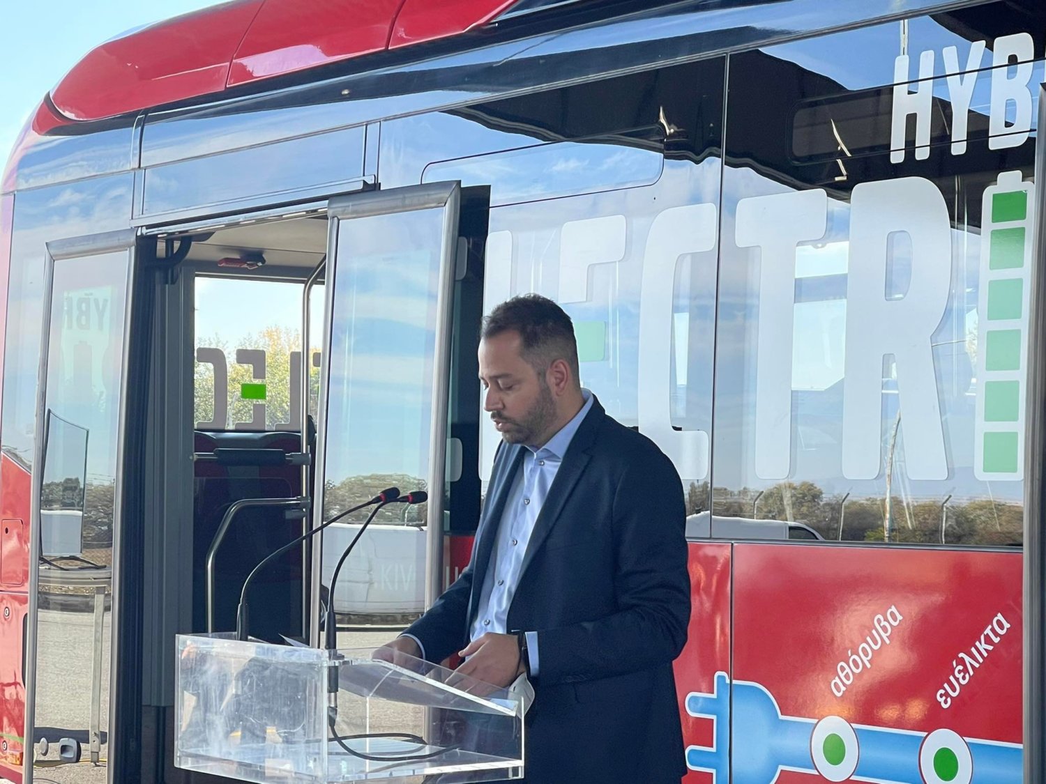 Το υβριδικό λεωφορείο είναι μάρκας Volvo 7900 του Ομίλου Σαρακάκη. Ο Διευθύνων Σύμβουλος του Ομίλου Επιχειρήσεων Σαρακάκη, Αλέξανδρος Δ. Σαρακάκης, υπογράμμισε στην ομιλία του ότι «είμαστε ενταγμένοι στην εκστρατεία που έχει ξεκινήσει τα τελευταία χρόνια παγκοσμίως πως μπορούμε να είμαστε πιο συνειδητοποιημένοι απέναντι στο περιβάλλον και πως μπορούμε να μειώνουμε το αποτύπωμα όλων των δραστηριοτήτων μας. Η απάντηση τουλάχιστον για το κομμάτι που έχει να κάνει με την αστική συγκοινωνία είναι η τεχνολογία του σήμερα που υπάρχει σε αυτό το λεωφορείο».
