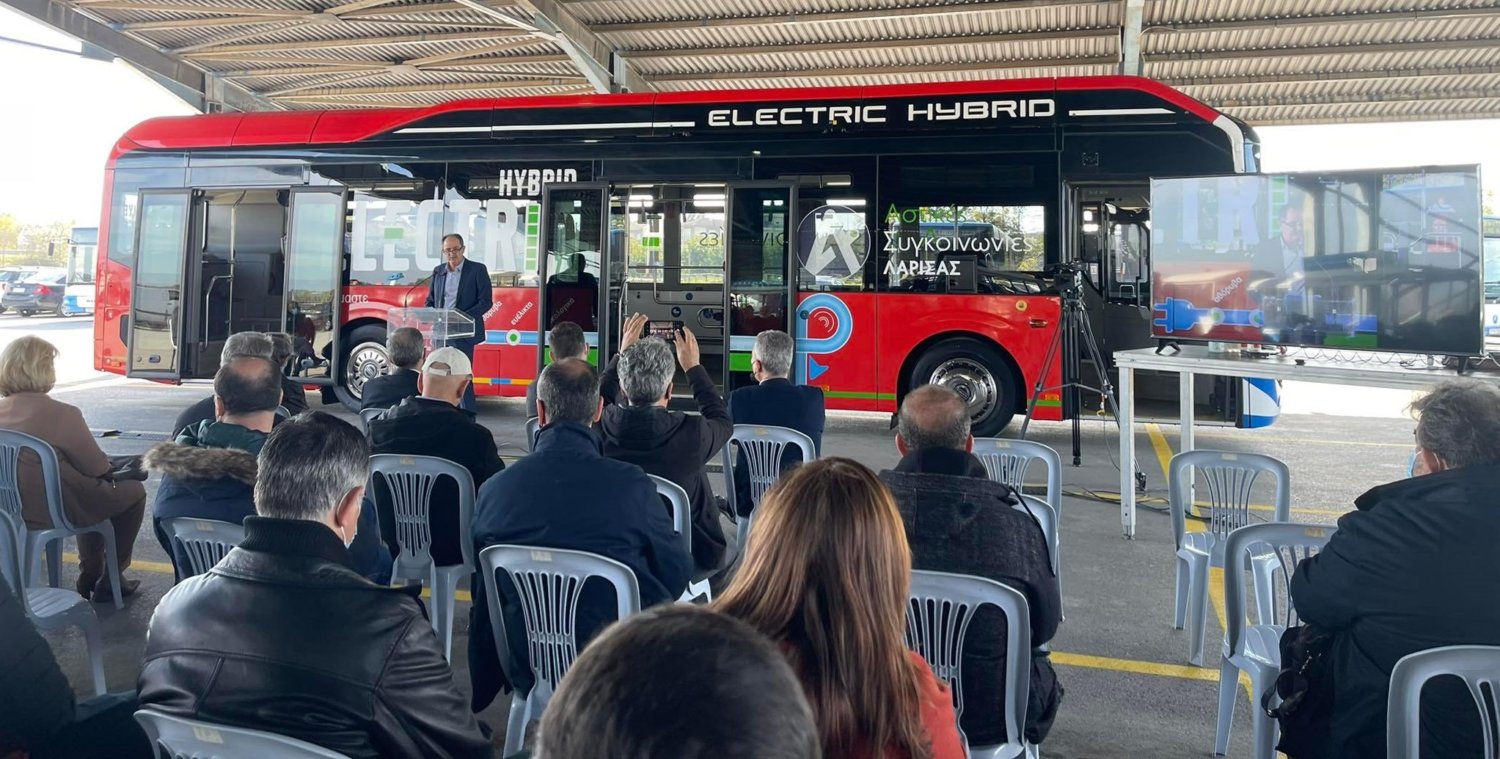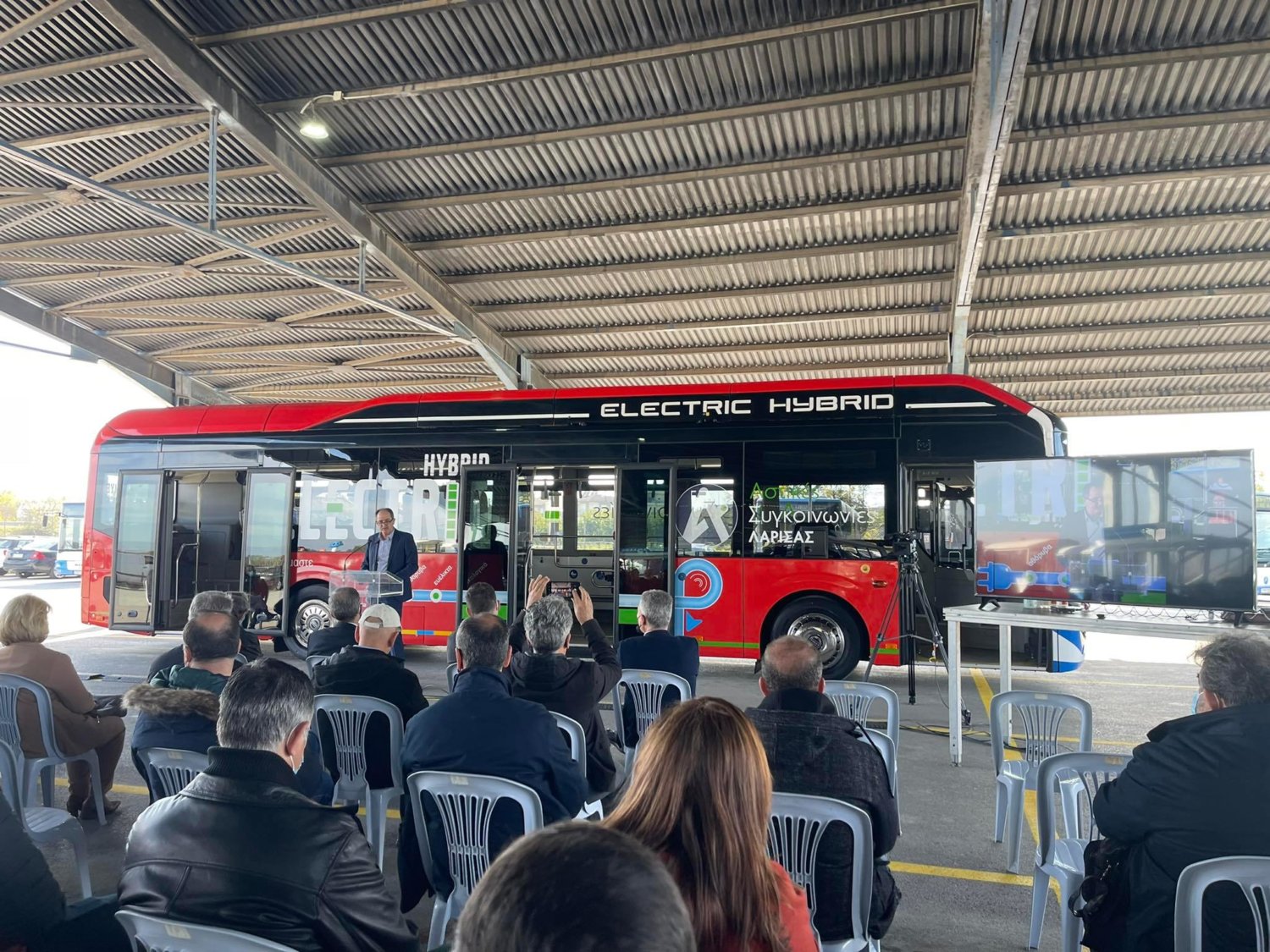 Στο αμαξοστάσιο του Αστικού ΚΤΕΛ Λάρισας πραγματοποιήθηκε σήμερα η επίσημη παρουσίαση του καινοτόμου υβριδικού λεωφορείου, του πρώτου στην Ελλάδα, που εδώ και έναν μήνα κυκλοφορεί στους δρόμους της πόλης.