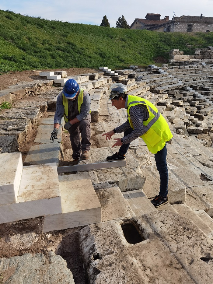 Στις 19 Νοεμβρίου ολοκληρώθηκαν οι εργασίες επανατοποθέτησης των ταυτισμένων εδωλίων στις κερκίδες Α, Β, Γ και Δ του κυρίως θεάτρου όπως αυτό προβλέπεται από την εγκεκριμένη μελέτη. Οι εργασίες προχωρούν απρόσκοπτα και βρίσκονται εντός του εγκεκριμένου χρονοδιαγράμματος του ΤΔΕ του έργου. Το σύνολο των ταυτισμένων εδωλίων που τοποθετήθηκαν στις τέσσερις πρώτες κερκίδες ανέρχεται σε 148.