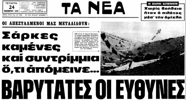 Ήταν τέτοιες ημέρες του 1976 όταν αεροπλάνο της Ολυμπιακής Αεροπορίας κατέπεσε στην περιοχή του όρους Σαρανταπόρου, με αποτέλεσμα να χάσουν τη ζωή τους και οι 50 επιβαίνοντες.