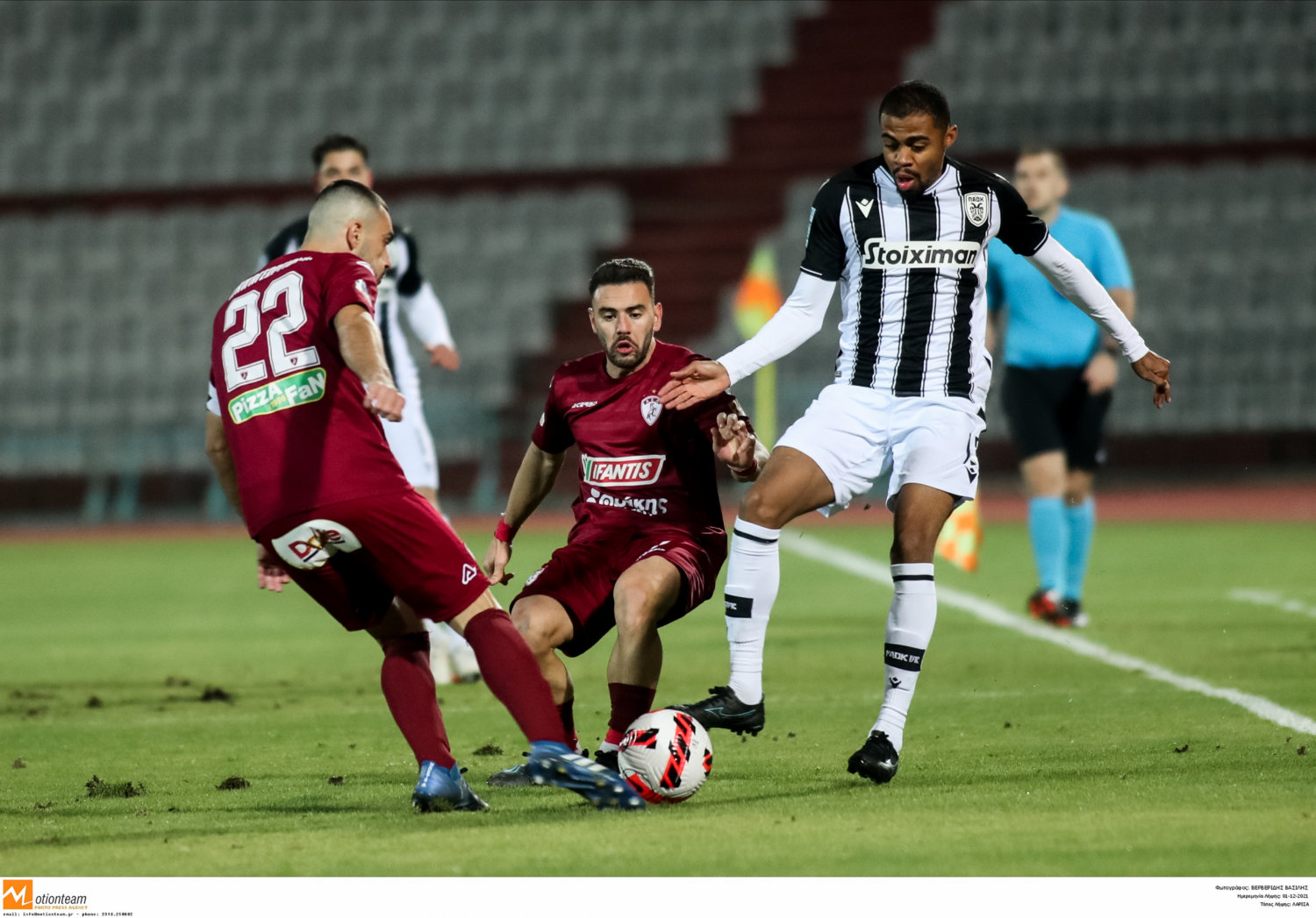 Το γκολ του Αϊμέν Ταχάρ στο 65ο λεπτό δεν στάθηκε ικανό να δώσει τη νίκη στην ΑΕΛ, η οποία στο 5ο λεπτό τον καθυστερήσεων είδε τον Κούρτιτς να παραβιάζει την εστία του Σουλούκου και να διαμορφώνει το τελικό 1-1, μη επιτρέποντας στους «βυσσινί» να διατηρήσουν ελπίδες πρόκρισης για την επόμενη φάση του Κυπέλλου Ελλάδας.