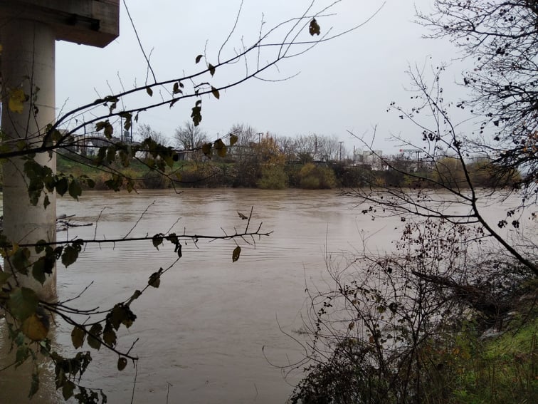 «Φουσκωμένος» εμφανίζεται τις τελευταίες ώρες ο Πηνειός ποταμός στη Λάρισα. Ειδικά στην εξωτερική του κοίτη η στάθμη του νερού είναι σε υψηλά επίπεδα κι αυτό οφείλεται προφανώς στην έντονη βροχόπτωση στις γύρω περιοχές τα τελευταία 24ωρα.