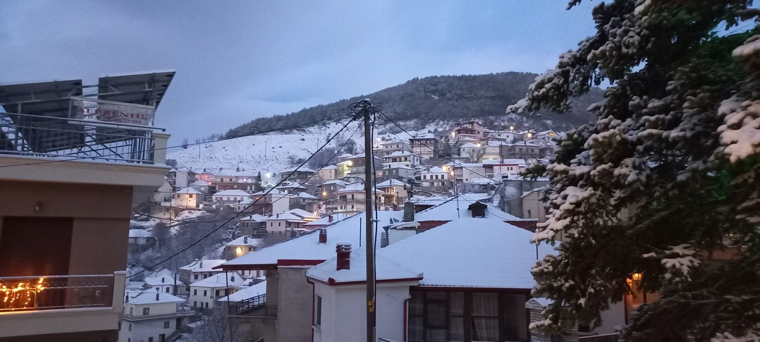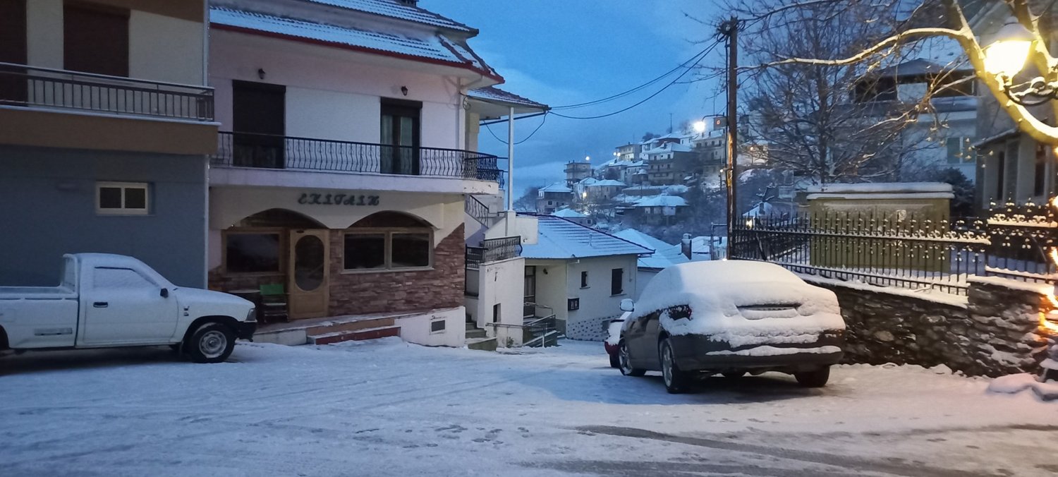 Χιονισμένο τοπίο αντικρίζουν το πρωί της Τρίτης οι κάτοικοι ορεινών περιοχών της Π.Ε. Λάρισας.