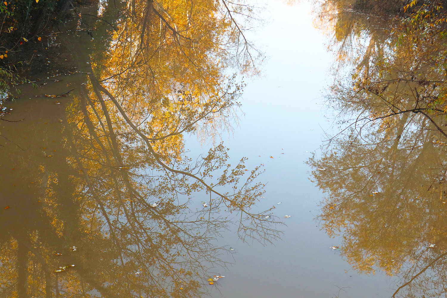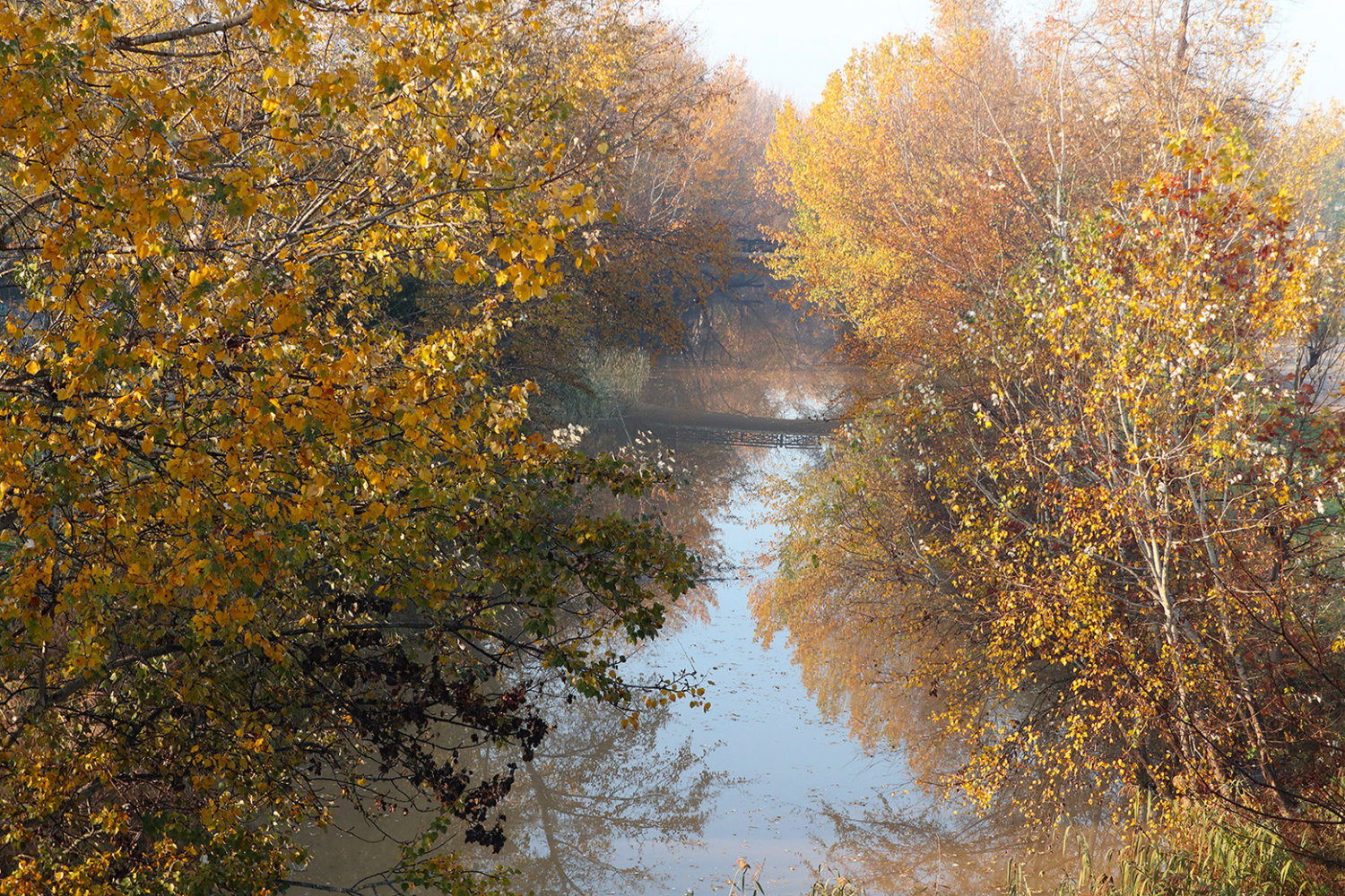 Είναι τα χρώματα των δένδρων που μπερδεύονται με το φως και το στοιχείο του νερού για να υπάρχει ένα μοναδικό αποτέλεσμα. Αυτό του Πηνειού ποταμού στη Λάρισα.