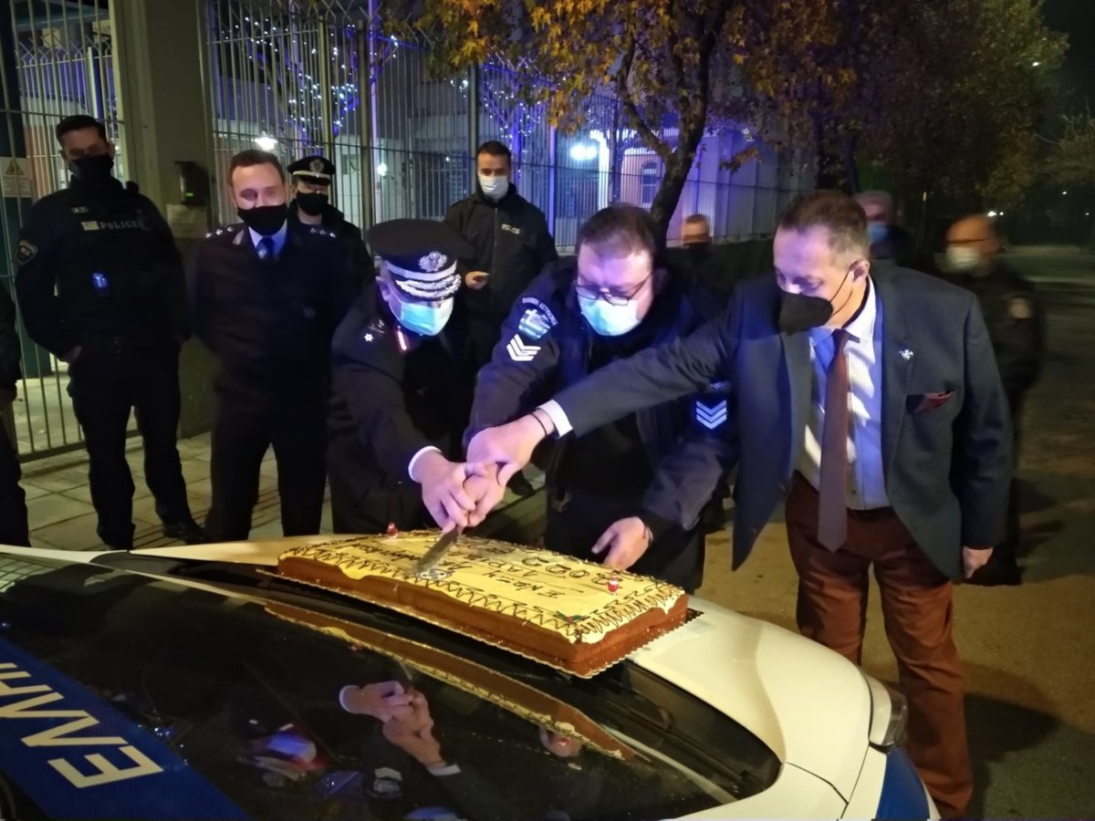 Το έθιμο τηρήθηκε και φέτος. Η κοπή της πρωτοχρονιάτικης βασιλόπιτας έγινε πάνω σε περιπολικό στην είσοδο του Αστυνομικού Μεγάρου Λάρισας!