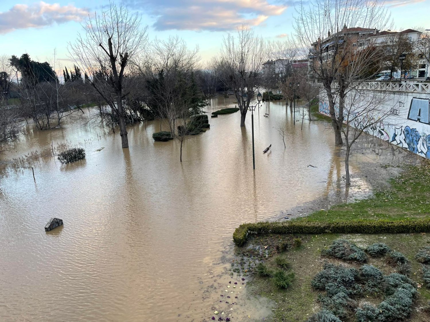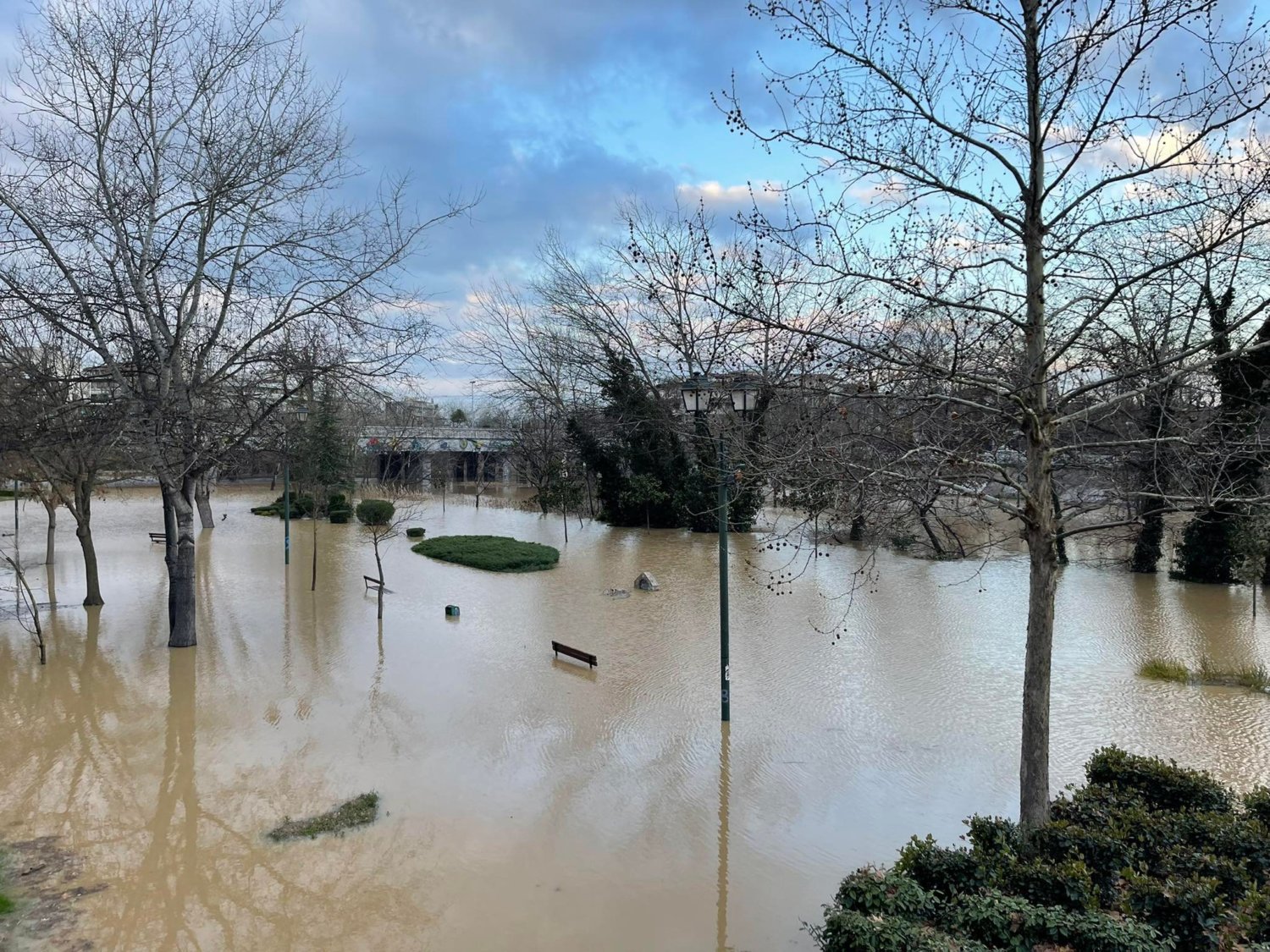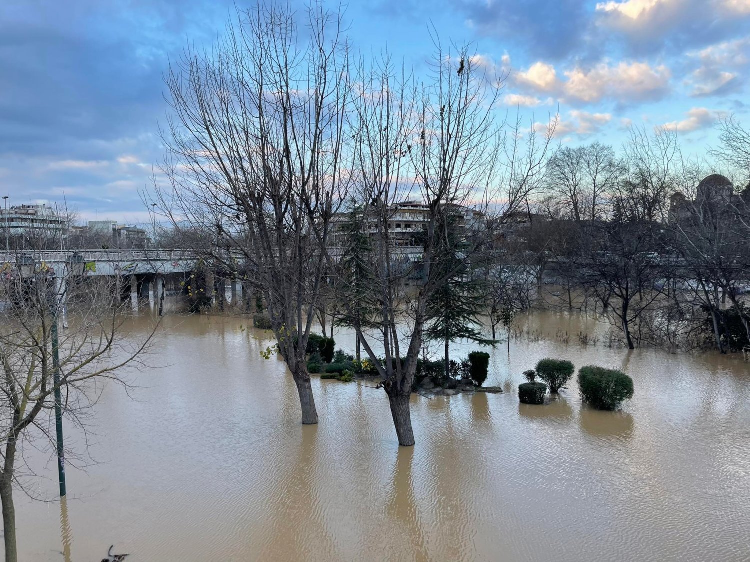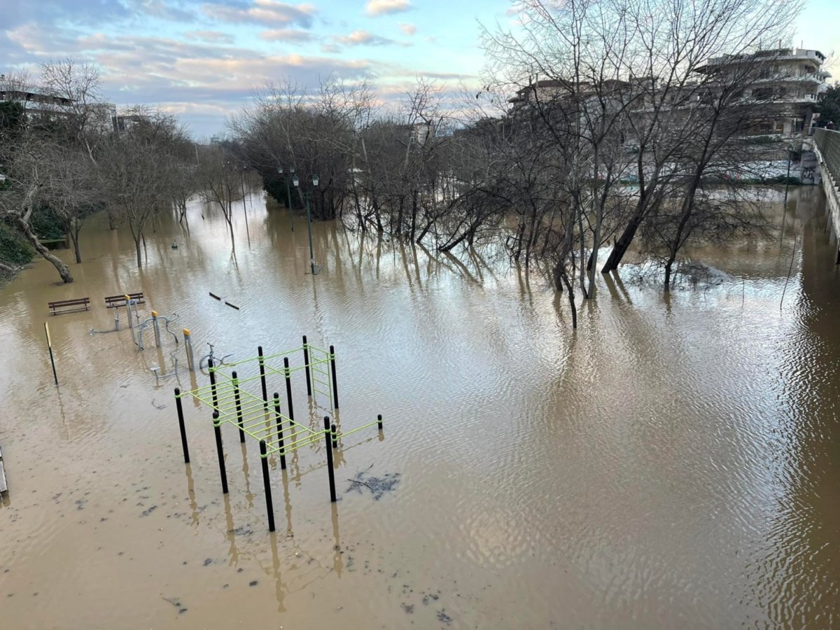 Όλα έχουν καλυφθεί από το νερό και είναι αδύνατον οι συμπολίτες να κινηθούν στους διαμορφωμένους χώρους κοντά στο ποτάμι.