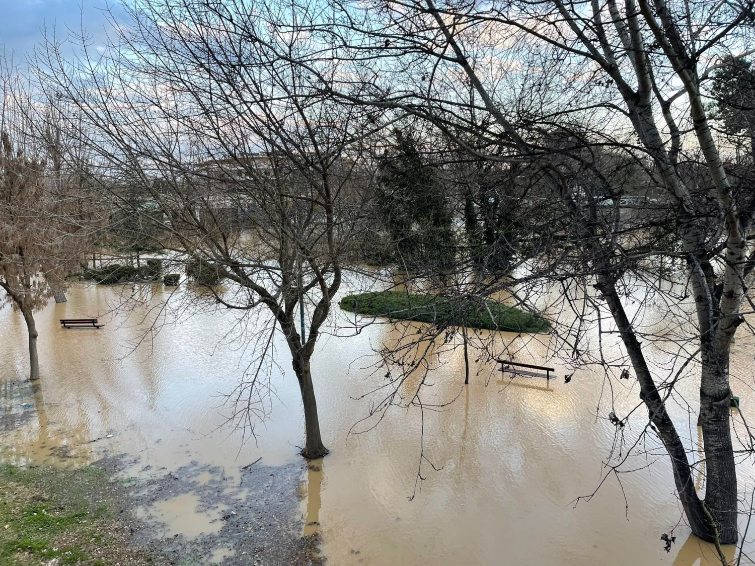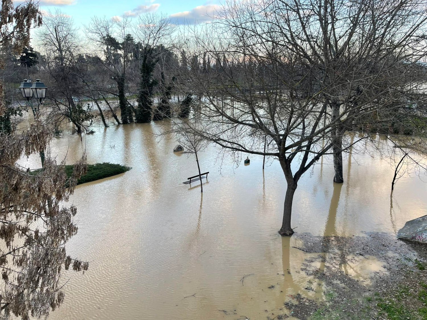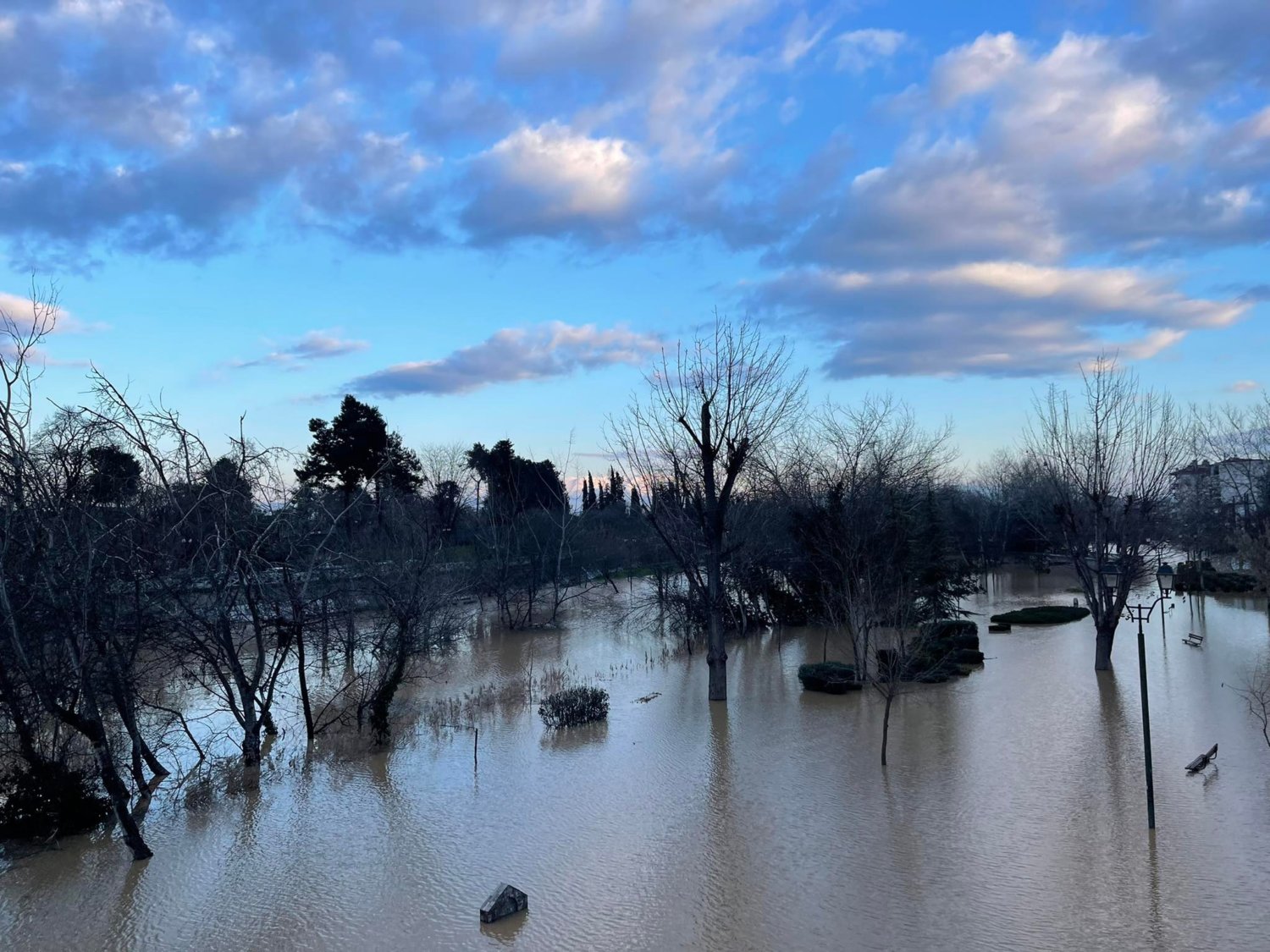 Όλα έχουν καλυφθεί από το νερό και είναι αδύνατον οι συμπολίτες να κινηθούν στους διαμορφωμένους χώρους κοντά στο ποτάμι.