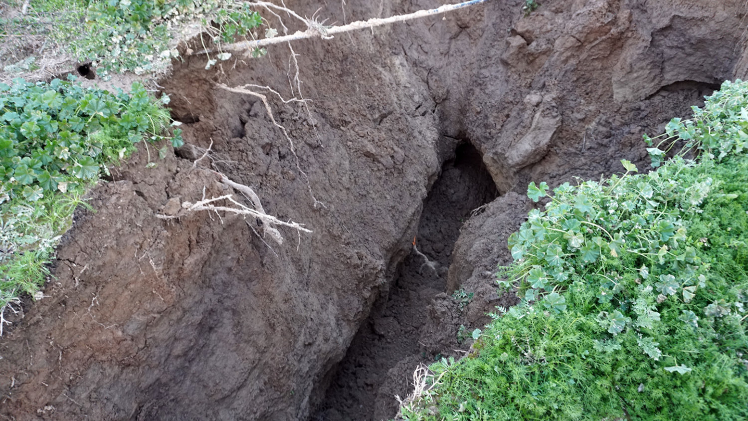 Η κακοκαιρία «Διομήδης» άφησε την… υπογραφή της από το χωριό του Καλοχωρίου. Αφού πλημμύρισε εκτάσεις δημιούργησε και ένα μεγάλο ρήγμα δεκάδων μέτρων και μεγάλου βάθους. Ικανό μάλιστα να πέσουν μέσα ακόμα και δένδρα που καλλιεργούνται στην περιοχή. Το μέγεθος της ζημιάς κατέγραψε με το φακό του, το Larissanet.gr που βρέθηκε στην περιοχή. Το συγκεκριμένο σημείο βρίσκεται στην έξοδο του Καλοχωρίου προς το Χειμάδι και αν μη τι άλλο είναι εντυπωσιακό.
