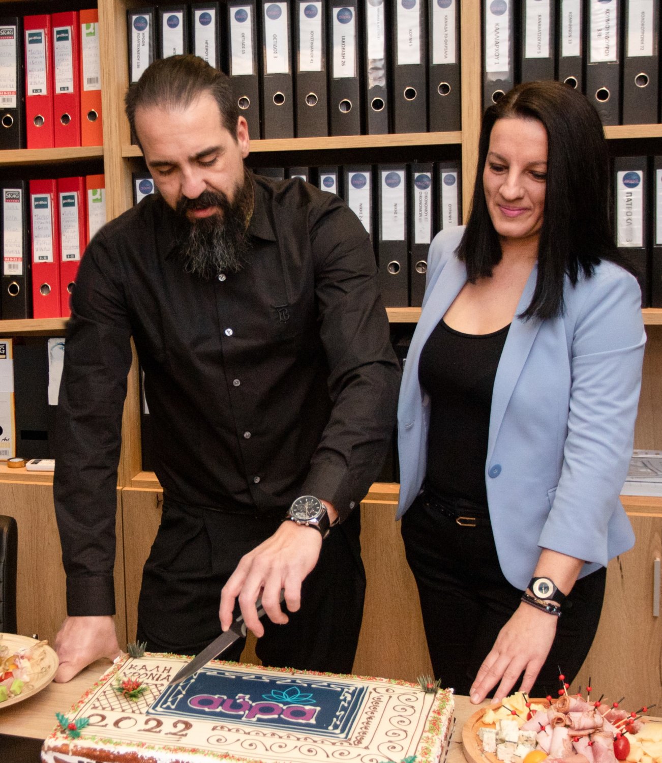 Στα κεντρικά γραφεία της εταιρίας «αύρα Διαχείριση», σε μία ιδιαίτερα ζεστή και χαρούμενη ατμόσφαιρα πραγματοποιήθηκε χθες το βράδυ η κοπή της Βασιλόπιτας για το νέο έτος, τηρώντας όλα τα απαραίτητα υγειονομικά μέτρα.