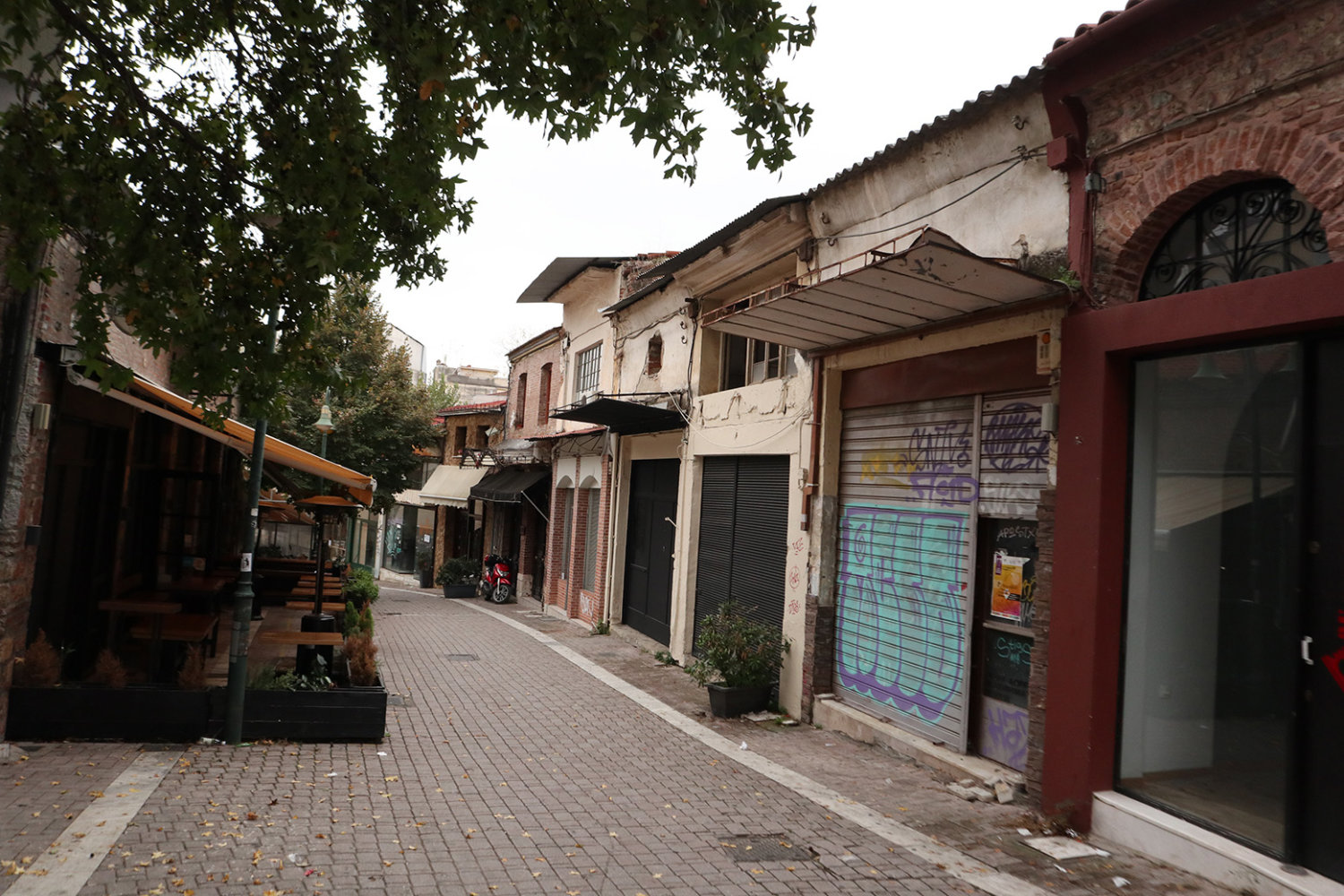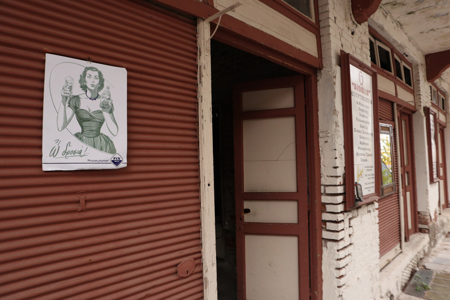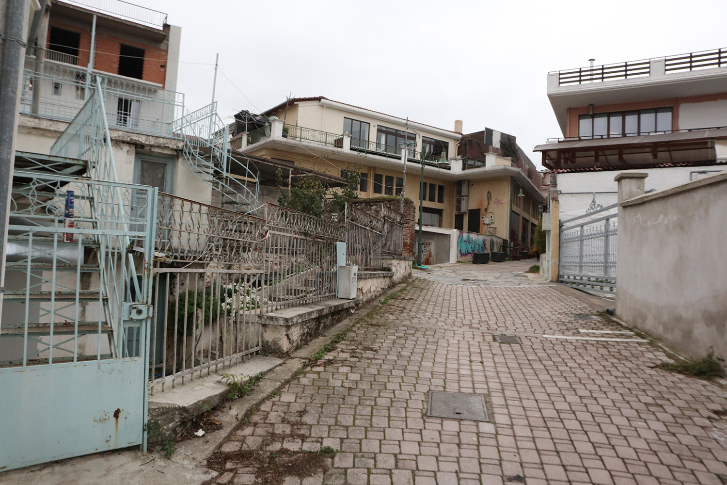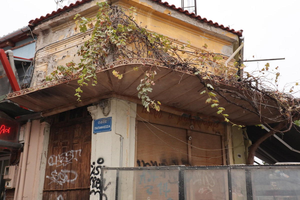 Αυλές με σιδερένιες στριφογυριστές σκάλες, βεράντες με περίτεχνα κάγκελα, τοίχοι χτισμένοι με τούβλα πολλών δεκαετιών πίσω από μάστορες που δεν υπάρχουν πιά, σοκάκια στενά, πεζοδρομημένα και αδιέξοδα. Πόρτες κλειδωμένες με κλειδιά που έχουν χαθεί, λάμπες που δεν ανάβουν πια και πινακίδες καταστημάτων από τότε που τα τηλέφωνα στην πόλη ήταν τετραψήφια…