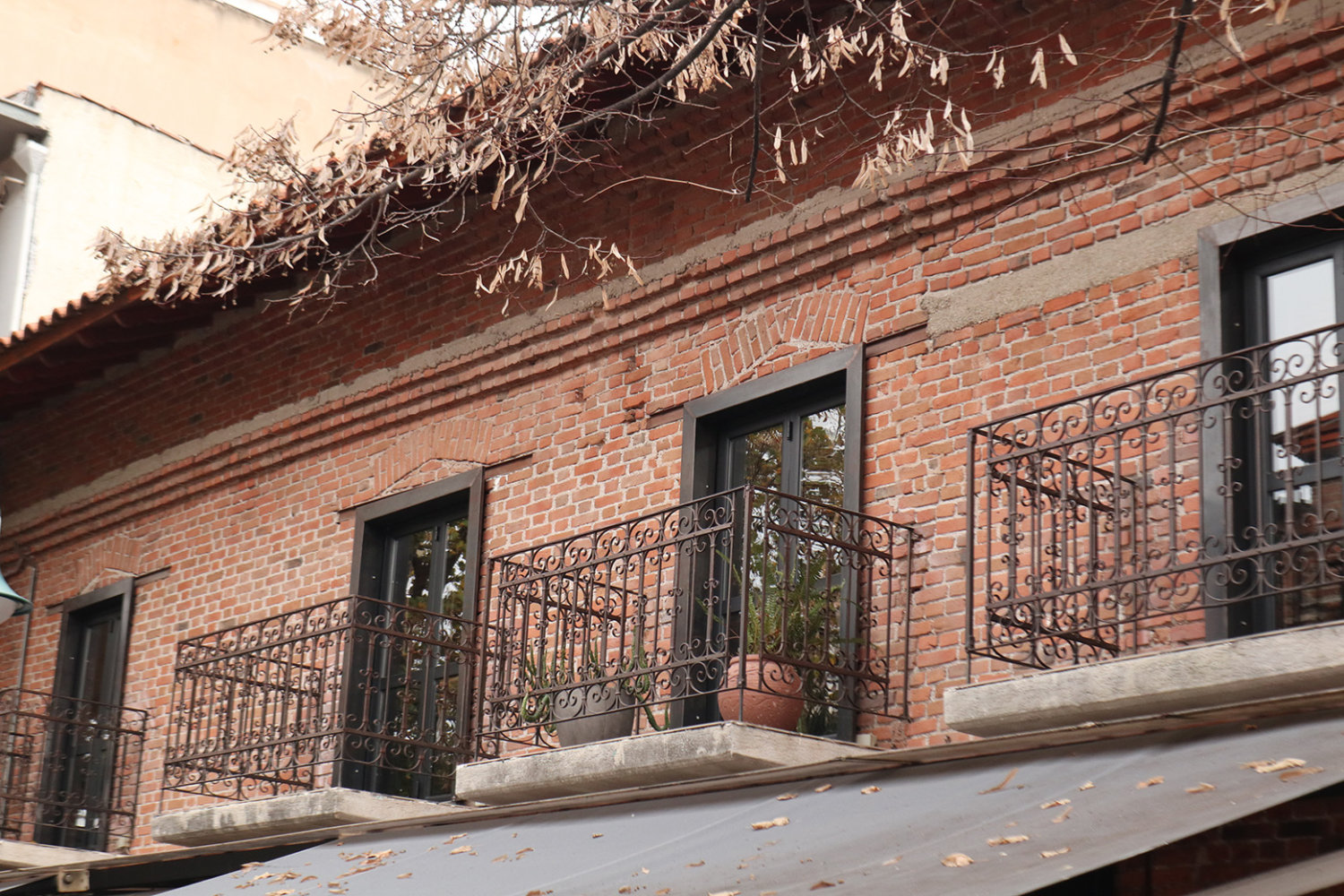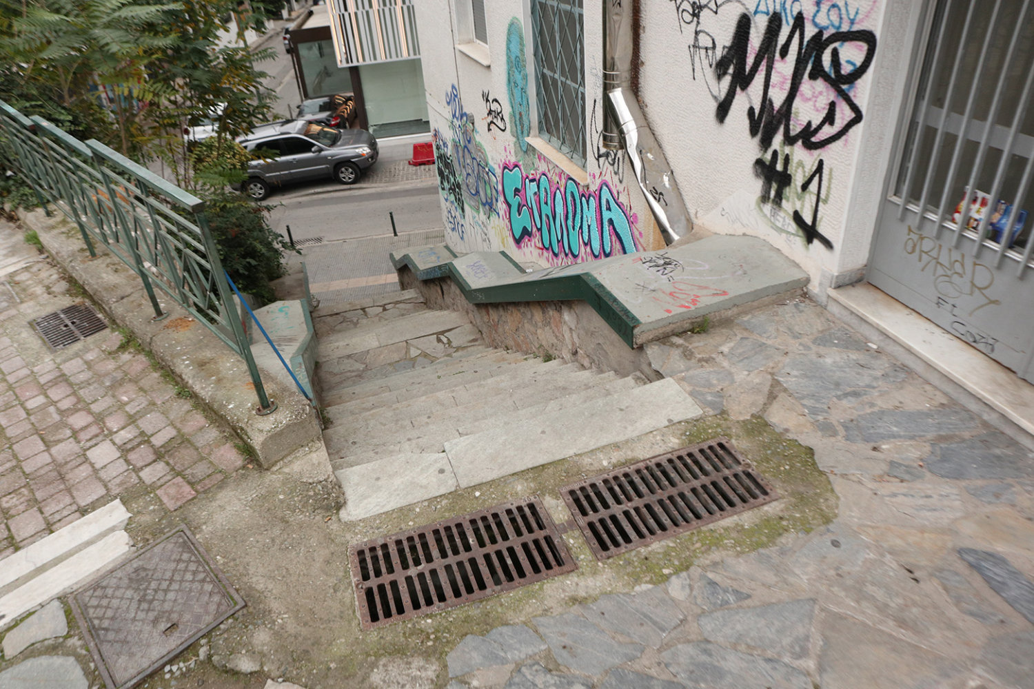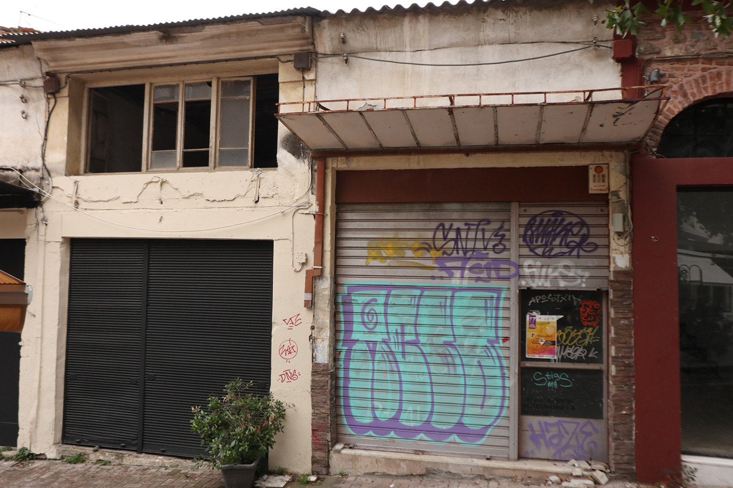 Αυλές με σιδερένιες στριφογυριστές σκάλες, βεράντες με περίτεχνα κάγκελα, τοίχοι χτισμένοι με τούβλα πολλών δεκαετιών πίσω από μάστορες που δεν υπάρχουν πιά, σοκάκια στενά, πεζοδρομημένα και αδιέξοδα. Πόρτες κλειδωμένες με κλειδιά που έχουν χαθεί, λάμπες που δεν ανάβουν πια και πινακίδες καταστημάτων από τότε που τα τηλέφωνα στην πόλη ήταν τετραψήφια…