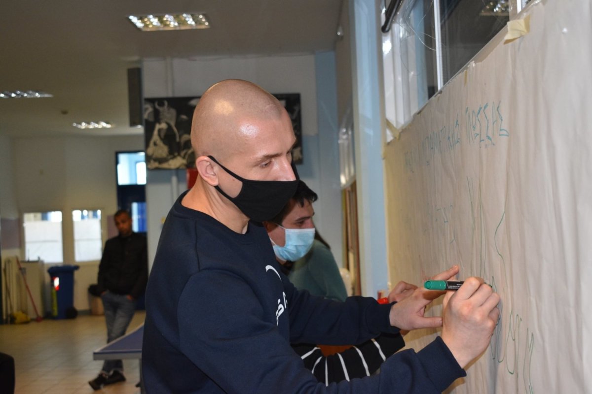 Στην εκδήλωση που ακολούθησε παρουσιάστηκε η εξέλιξη της ιστορίας των γλωσσών και της γραφής καθώς και βίντεο που αναδεικνύουν τη «δύναμη των λέξεων». Στο δεύτερο μέρος, παρουσιάστηκε το γλωσσάρι των νέων και των κρατουμένων, ως περιπτώσεις ειδικής γλώσσας. Τέλος, ένας εκπαιδευόμενος, εκπρόσωπος ομάδας που μιλάει την ίδια μητρική γλώσσα, έγραψε σε ειδική επιφάνεια τη λέξη «ελευθερία» στη γλώσσα καταγωγής του».
