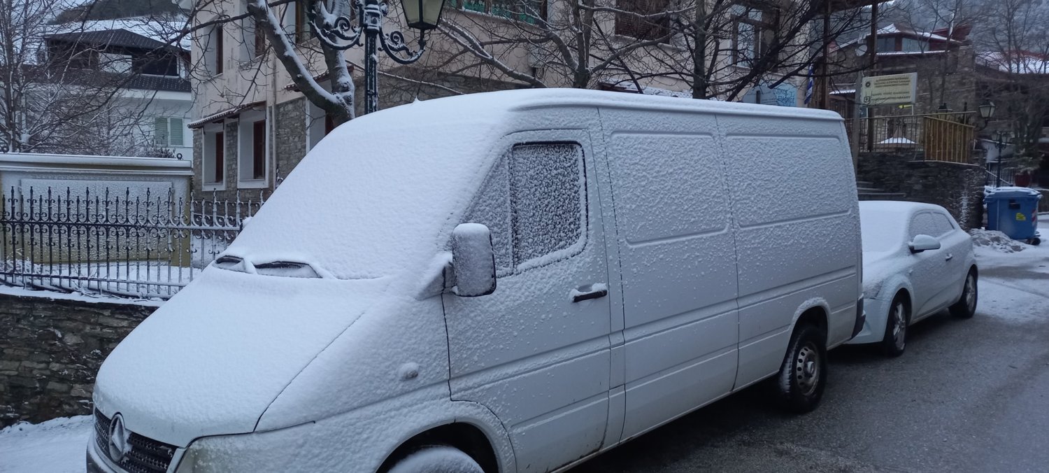 Χαρακτηριστικά, στο Λιβάδι Ελασσόνας πριν τις 7 π.μ. τα θερμόμετρα έδειχναν -2 βαθμούς Κελσίου, ενώ η χιονόπτωση έχει αφήσει τα σημάδια της.