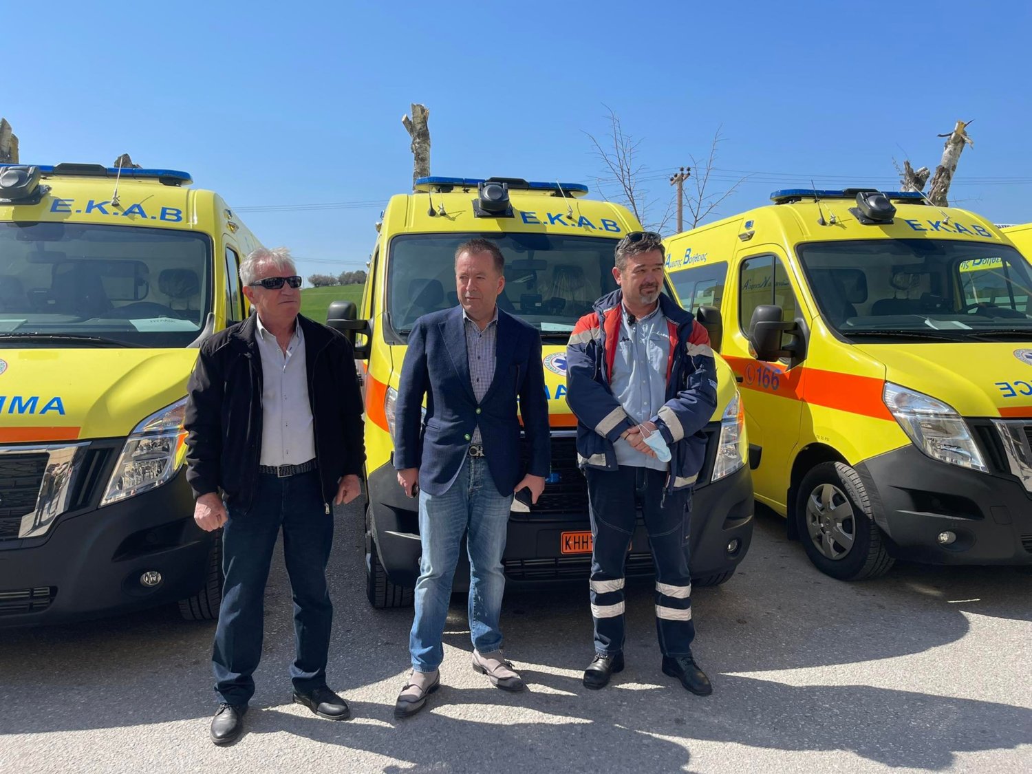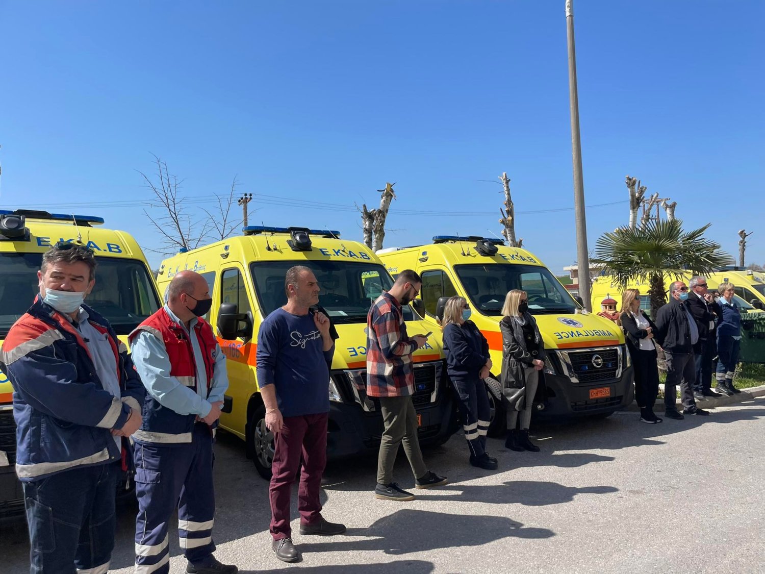 «Στο ΕΚΑΒ Λάρισας ήρθαν δέκα νέα ασθενοφόρα,τα οποία θα διανεμηθούν σύμφωνα με τις ανάγκες που υπάρχουν στη Θεσσαλία, ενώ ετοιμαζόμαστε για έναν νέο διαγωνισμό» τόνισε ο πρόεδρος των εργαζομένων του ΕΚΑΒ Θεσσαλίας κ. Γιάννης Γούλας.