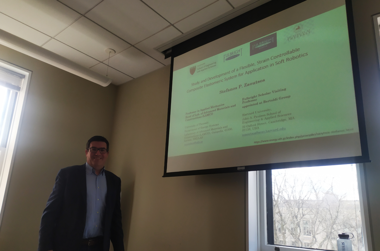 Στη Βοστώνη των Ηνωμένων Πολιτειών βρίσκεται από τις αρχές του έτους ο Στέφανος Ζαούτσος, Καθηγητής του τμήματος Συστημάτων Ενέργειας του Πανεπιστημίου Θεσσαλίας, με την ιδιότητα του Fulbright Visiting Professor στο John A. Paulson School of Engineering and Applied Sciences, του Harvard University προκειμένου να συνεργαστεί με το ερευνητικό Εργαστήριο Εύκαμπτης Ρομποτικής (Bertoldi Group: Materials by design) στο πλαίσιο ερευνητικής δραστηριότητας για την μελέτη, το σχεδιασμό και την ανάπτυξη εύκαμπτων ρομποτικών συστημάτων (soft robotics).