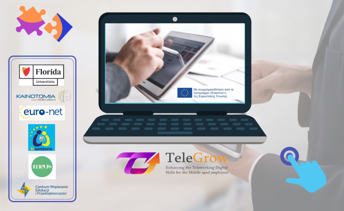 Το έργο TeleGrow: «Enhancing the Teleworking Digital Skills for the Middle aged employees» στοχεύει στη δημιουργία ενός περιβάλλοντος τηλεκατάρτισης και τηλεργασίας, χωρίς περιορισμούς και προσβάσιμο σε όλους, το οποίο θα μεγιστοποιήσει την αποτελεσματικότητα των χρηστών, διασφαλίζοντας παράλληλα τη δημόσια υγεία. Το έργο αποτελείται από μια κοινοπραξία 6 εταίρων από 5 διαφορετικές χώρες και απευθύνεται σε: