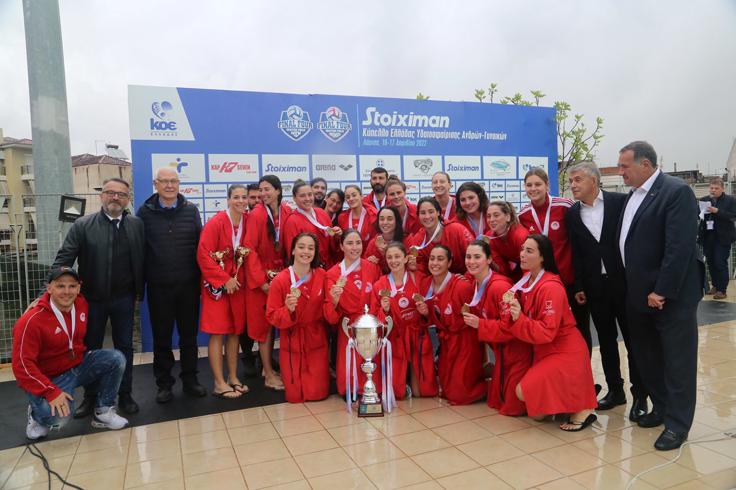 Για τέταρτη φορά σε πέντε διοργανώσεις, ο Ολυμπιακός αναδείχθηκε Κυπελλούχος Υδατοσφαίρισης στις Γυναίκες. Στον τελικό επικράτησε 14-7 του ΑΝΟ Γλυφάδας που αγωνίσθηκε για πρώτη φορά σε τελικό.