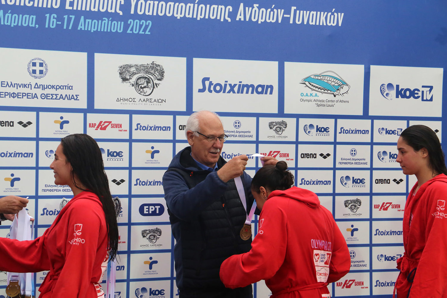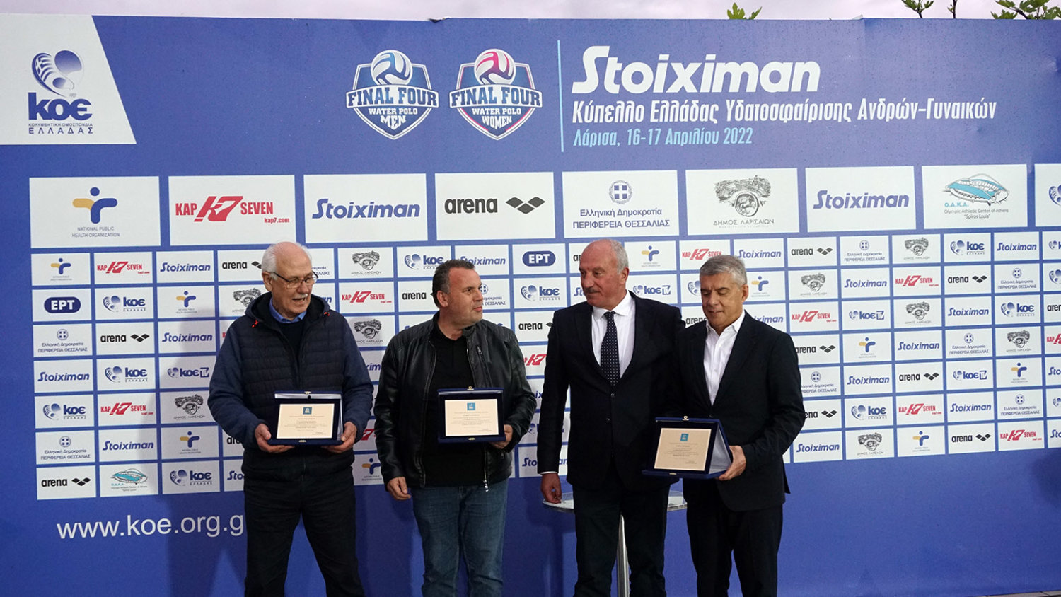 Στο ημίχρονο του τελικού ανδρών ο πρόεδρος της Κολυμβητικής Ομοσπονδίας Ελλάδας, Κυριάκος Γιαννόπουλος απένειμε τιμητικές πλακέτες, στον Περιφερειάρχη Θεσσαλίας, Κώστα Αγοραστό, στον Δήμαρχο Λαρισαίων, Απόστολο Καλογιάννη και στον πρόεδρο της Περιφερειακής Επιτροπής Θεσσαλίας Γεώργιο Κατσαντώνη που είναι και πρόεδρος στο ΝΟΛ