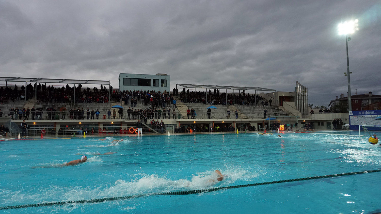 Αρκετός κόσμος στην κερκίδα του κολυμβητηρίου παρά τις άσχημες καιρικές συνθήκες