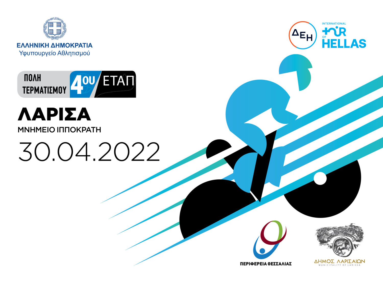 Η Λάρισα θα είναι η πόλη τερματισμού του 4ου ΕΤΑΠ του αγώνα που θα διεξαχθεί το Σάββατο 30 Απριλίου 2022. Ο τερματισμός στην πόλη της Λάρισας θα γίνει μπροστά από το Μνημείο του Ιπποκράτη στην οδό Γρηγορίου Λαμπράκη.
