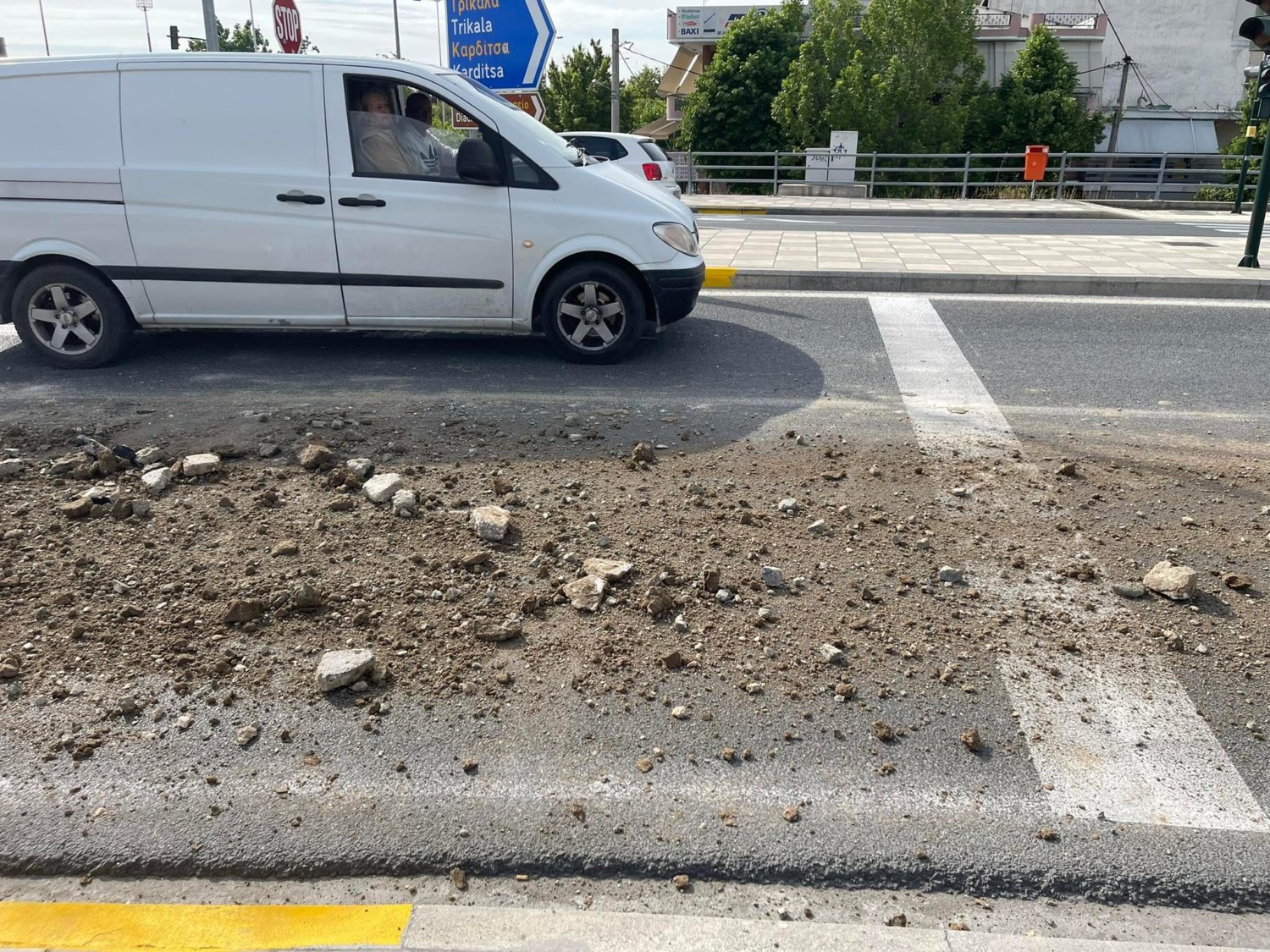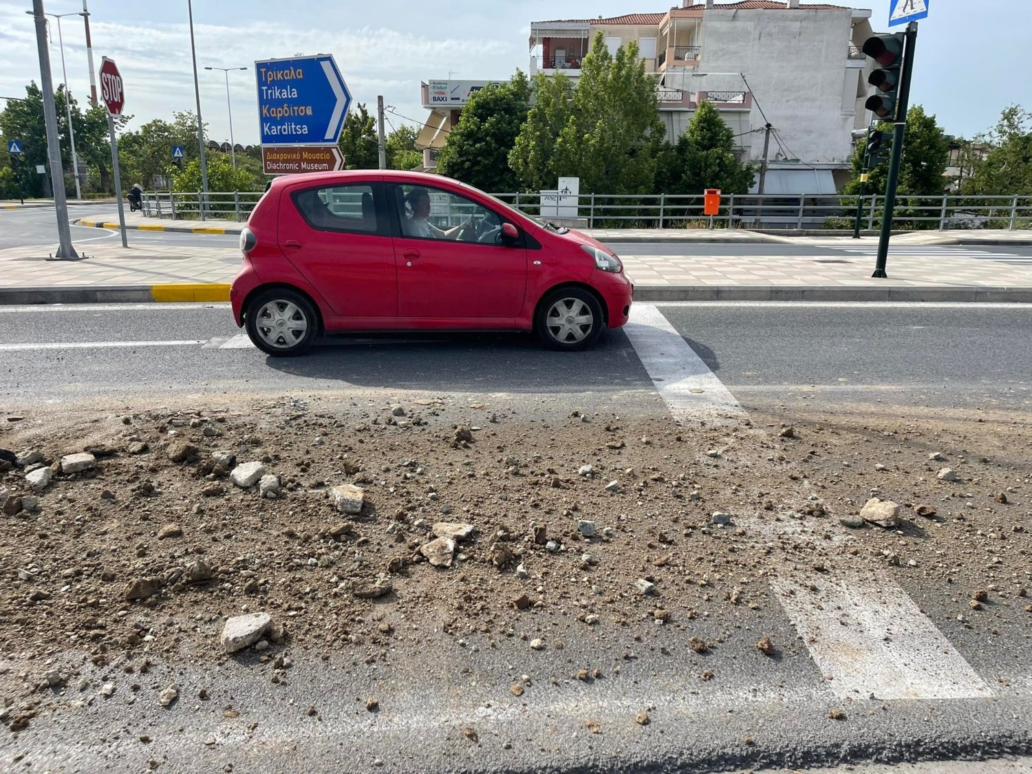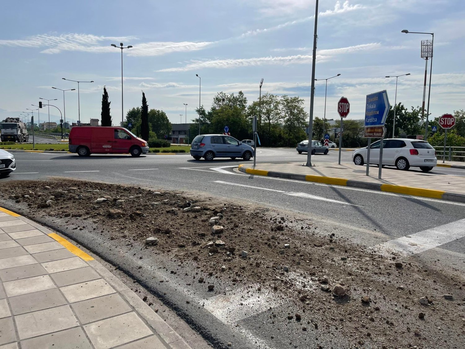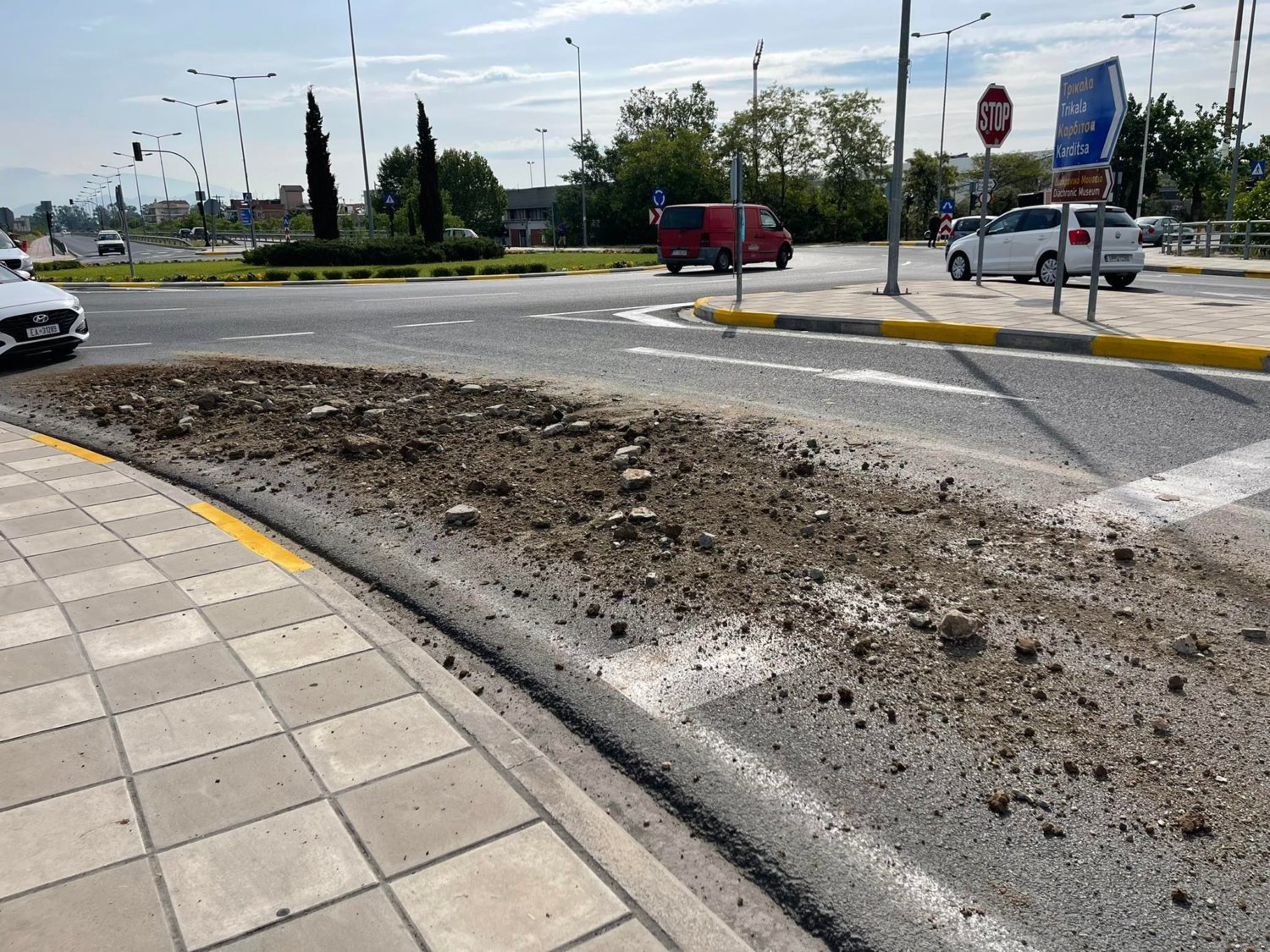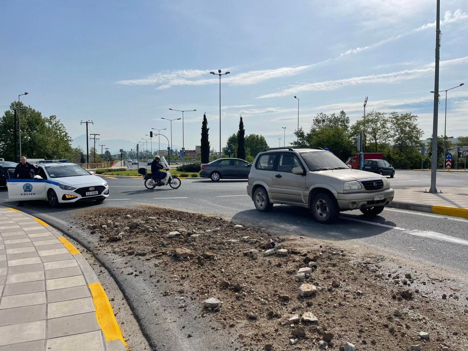 Για την ώρα είναι άγνωστη η προέλευση των χωμάτων, ενώ επί τόπου βρίσκεται περιπολικό για την προειδοποίηση των οδηγών, όπως και για τη ρύθμιση της κυκλοφορίας.