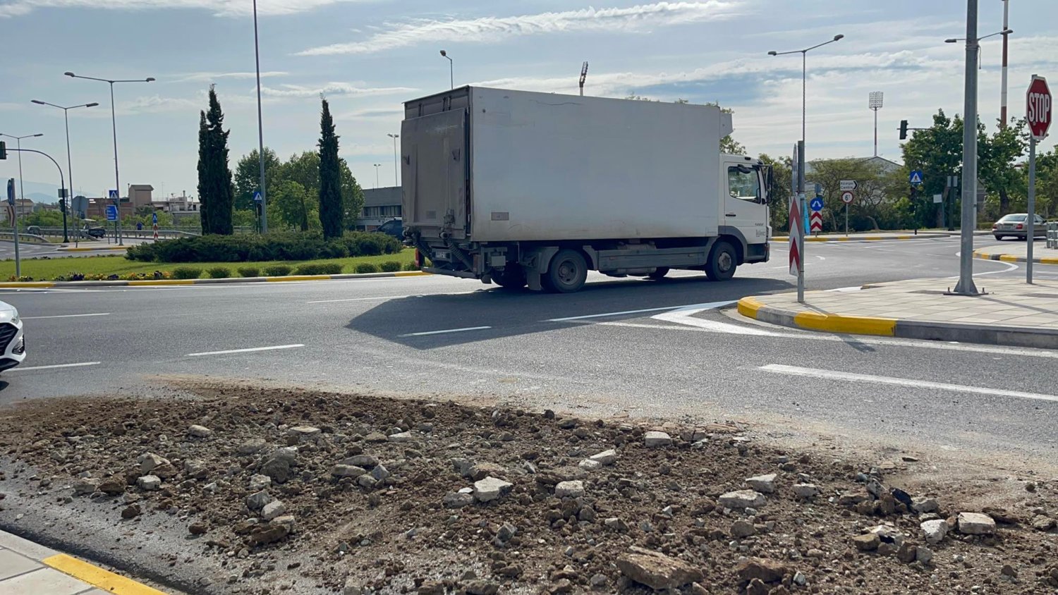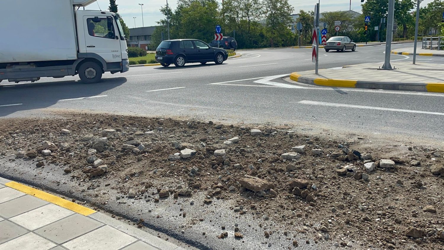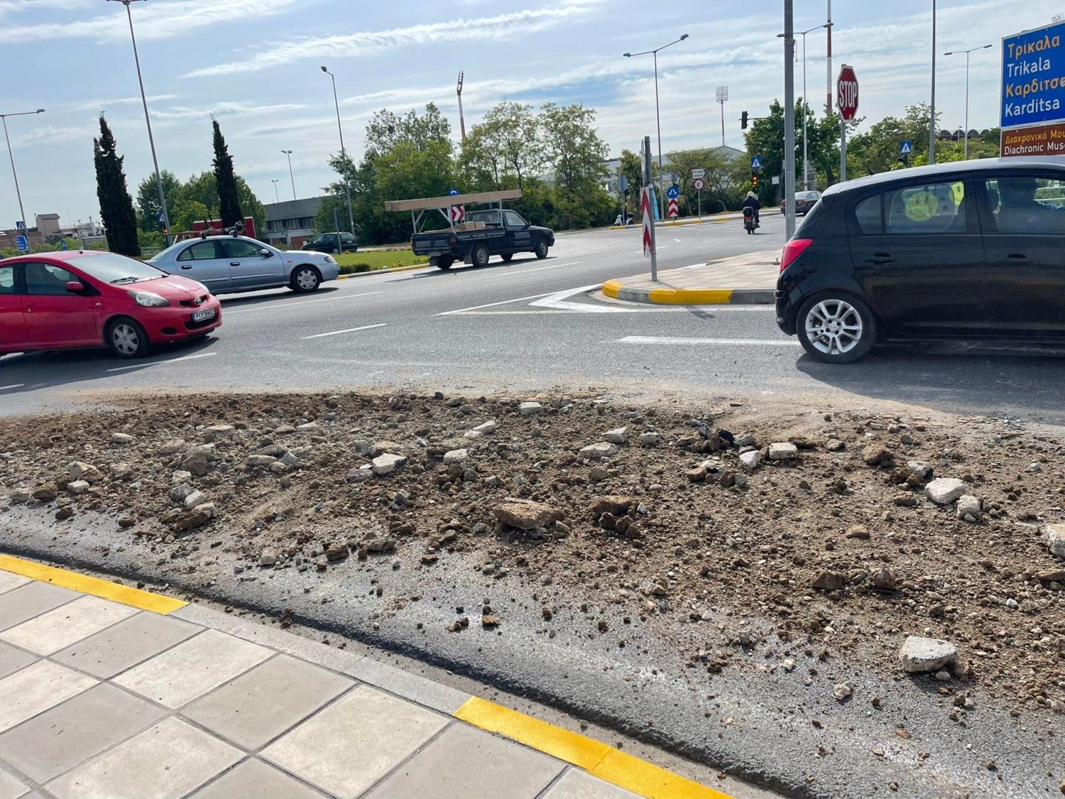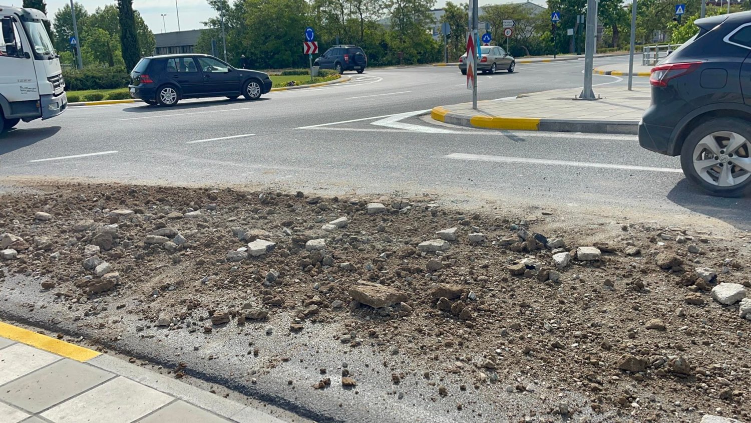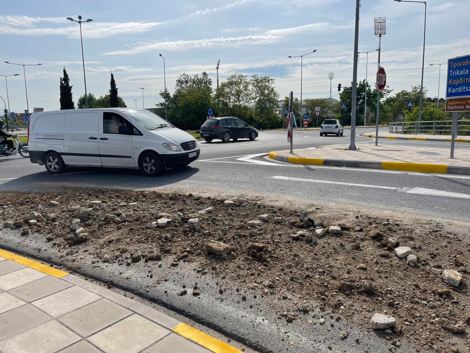 Για την ώρα είναι άγνωστη η προέλευση των χωμάτων, ενώ επί τόπου βρίσκεται περιπολικό για την προειδοποίηση των οδηγών, όπως και για τη ρύθμιση της κυκλοφορίας.