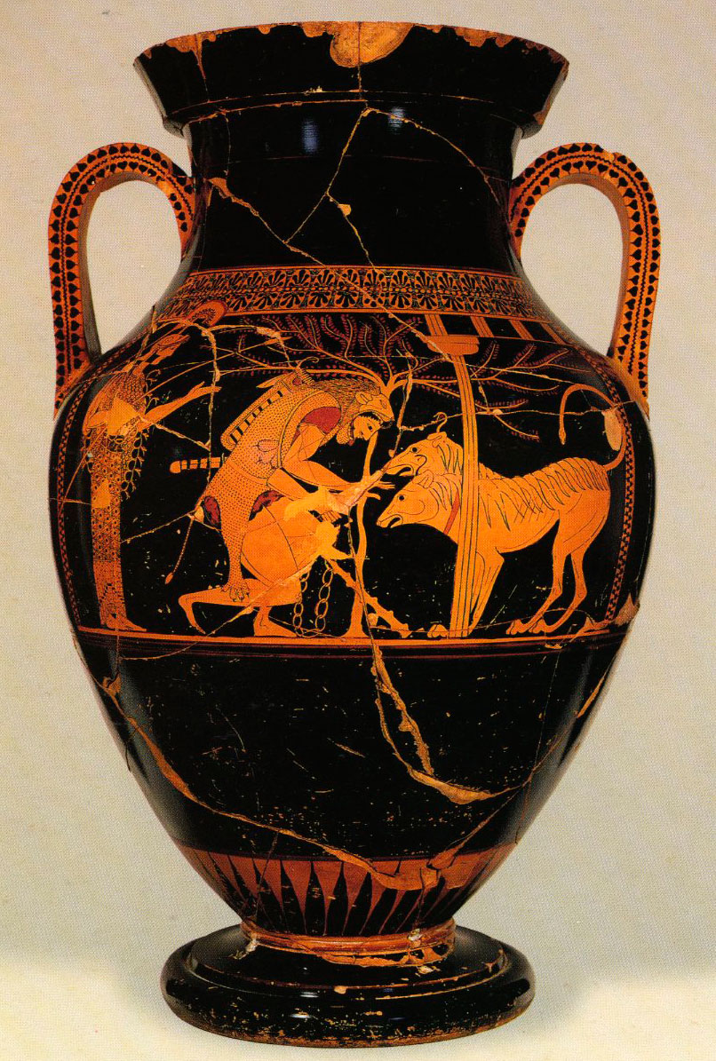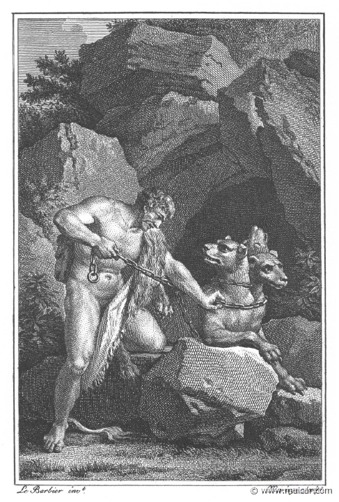 Ο ΔΩΔΕΚΑΤΟΣ ΑΘΛΟΣ ΤΟΥ ΗΡΑΚΛΗ: Ο βασιλιάς Ευρυσθέας είχε αναθέσει ως τελευταίο έργο-άθλο στον Ηρακλή τη σύλληψη, χωρίς τη χρήση όπλων, του Κέρβερου. Έτσι, μ΄αυτό το κατόρθωμα, ο ήρωας θα εξιλεωνόταν οριστικά για τη δολοφονία των δικών του παιδιών. Ο Ηρακλής κατέφυγε πρώτα στην Ελευσίνα για να μυηθεί στα Ελευσίνια Μυστήρια και να μπορέσει έτσι να μάθει πώς να εισέλθει και να βγεί από τον Κάτω Κόσμο ζωντανός. Έπειτα βρήκε την είσοδο στον Κάτω Κόσμο και με τη βοήθεια της Αθηνάς και του Ερμή τη διέσχισε. Εν συνεχεία ήρθε η σειρά της Εστίας να τον βοηθήσει να αποφύγει τον Χάροντα. Στον Κάτω Κόσμο πια ο Ηρακλής βρήκε το Θησέα και τον Πειρίθου, που είχαν φυλακιστεί δεμένοι, κολλημένοι καλύτερα, σε θρόνους, από τον Άδη γιατί αποπειράθηκαν να απαγάγουν την Περσεφόνη. Έπειτα ο Ηρακλής τράβηξε τον Θησέα πρώτα από το κάθισμά του ελευθερώνοντάς τον, αλλά η γη σείστηκε στην προσπάθειά του να απελευθερώσει και τον Πειρίθου, που φάνηκε καθαρά ότι ήταν καταδικασμένος να μείνει εκεί για πάντα. Ο Ηρακλής βρήκε τον Πλούτωνα και του ζήτησε την άδεια να φέρει τον Κέρβερο έξω από το βασίλειό του, στον επάνω κόσμο. Ο Άδης συμφώνησε με τον όρο ο Ηρακλής να πάρει το θηρίο χωρίς τη χρήση όπλων. Ο Ηρακλής κατάφερε μάλλον εύκολα να εξουδετερώσει τον Κέρβερο και να τραβήξει το θηρίο πίσω από την πλάτη του, σέρνοντάς στον έξω κόσμο από την είσοδο ενός σπηλαίου στην Πελοπόννησο. Έπειτα το οδήγσε στο παλάτι του Ευρυσθέα.
