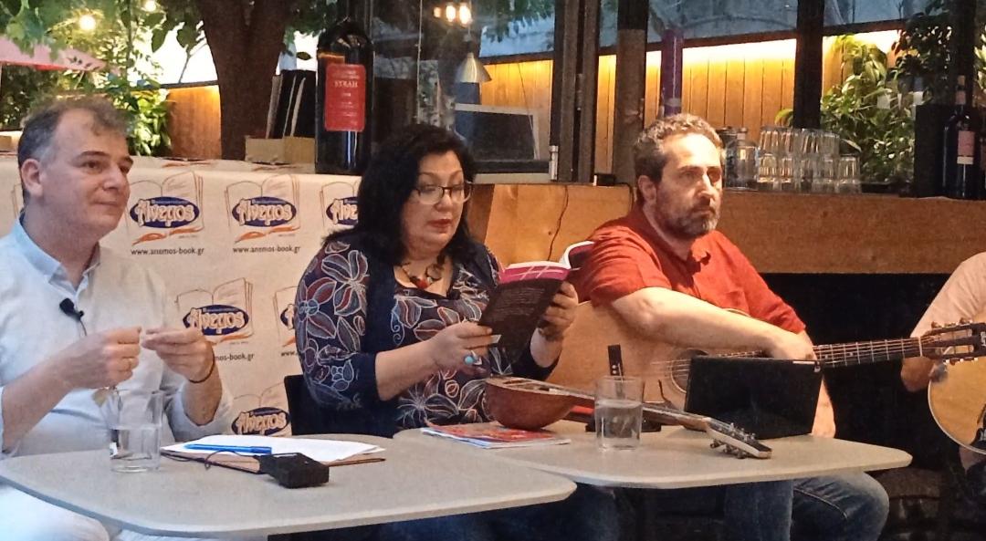 Η συγγραφέας κουβέντιασε για το βιβλίο με τον Θωμά Αστερίου, στιχουργό και Πρόεδρο του πολιτιστικού συλλόγου Πυθιωτών Λάρισας. Την παρουσίαση πλαισίωσαν μουσικά μαζί με την Κατερίνα Τσιρίδου, ο Γιώργος Κολτσίδας με το μπουζούκι του και ο Νίκος Πρωτόπαπας με την κιθάρα του. Η παρουσίαση έγινε στο αίθριο του πολυχώρου Κλίμαξ.