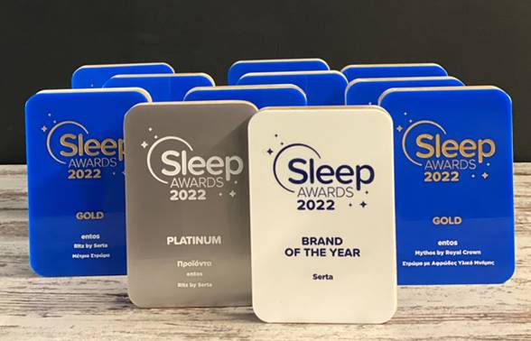 Τη μεγαλύτερη διάκριση «Brand of the Year» για τα στρώματα Serta καθώς και 11 ακόμη βραβεία απέσπασε η εταιρεία Entos – αποκλειστικός συνεργάτης του Cosmos για τη Λάρισα, τα Τρίκαλα και την Καρδίτσα – στα Sleep Awards 2022 που διοργανώθηκαν στην Ελλάδα για πρώτη φορά.