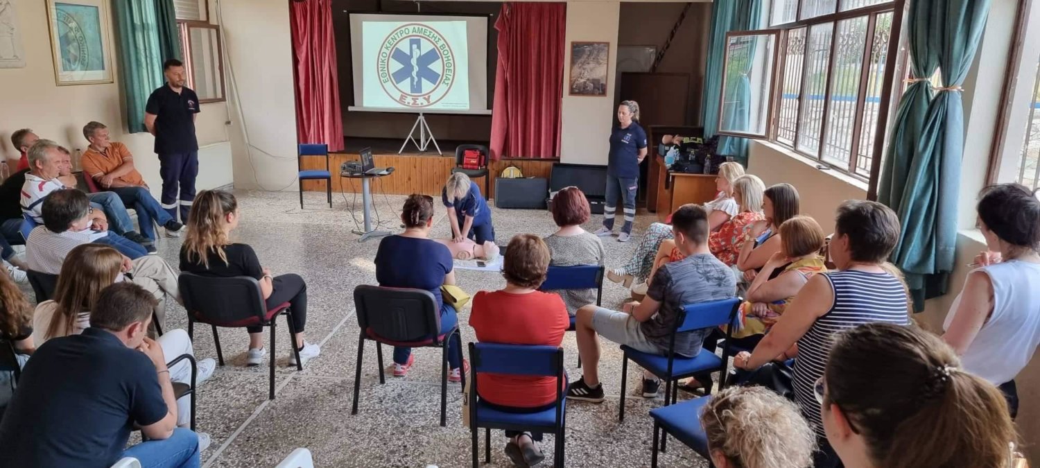 Σε Σαραντάπορο και Μηλέα Ελασσόνας βρέθηκε η εκπαιδευτική ομάδα του ΕΚΑΒ Λάρισας το Σαββατοκύριακο όπου παρείχε σεμινάρια στους εκπολιτιστικούς συλλόγους των κατοίκων, στη καρδιοαναπνευστική αναζωογόνηση με αυτόματο εξωτερικό απινιδωτή (AED), τραύμα, αιμορραγία πνιγμονή από ξένο σώμα κ.α.