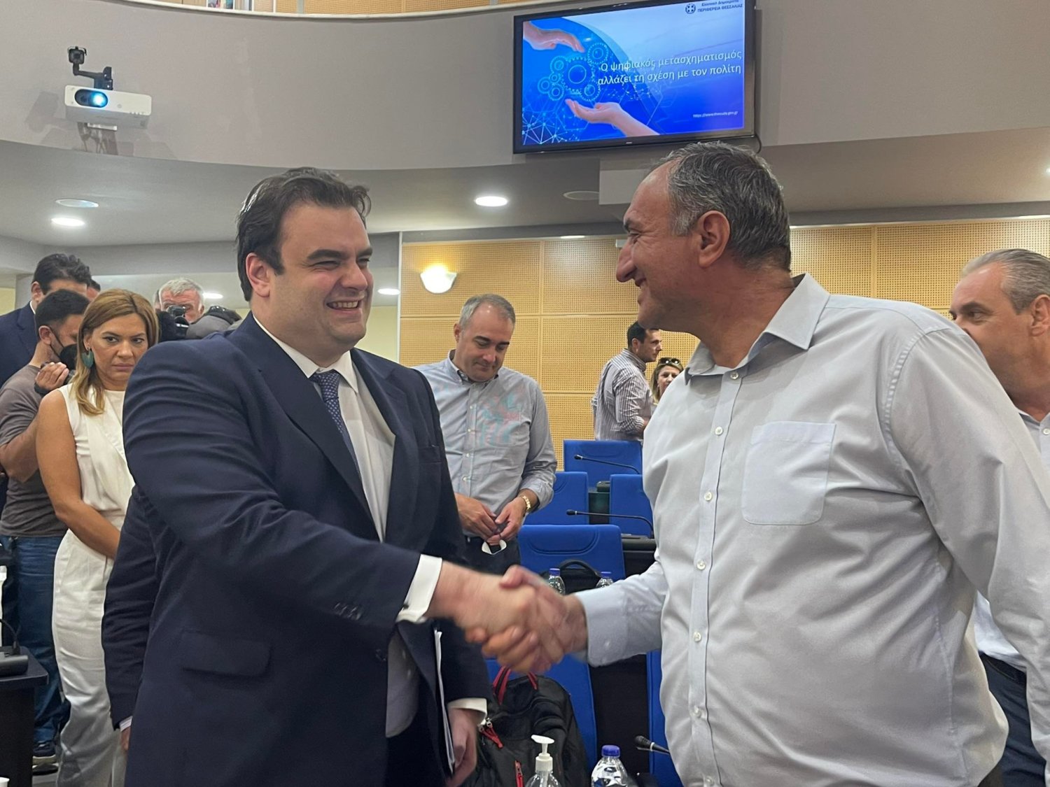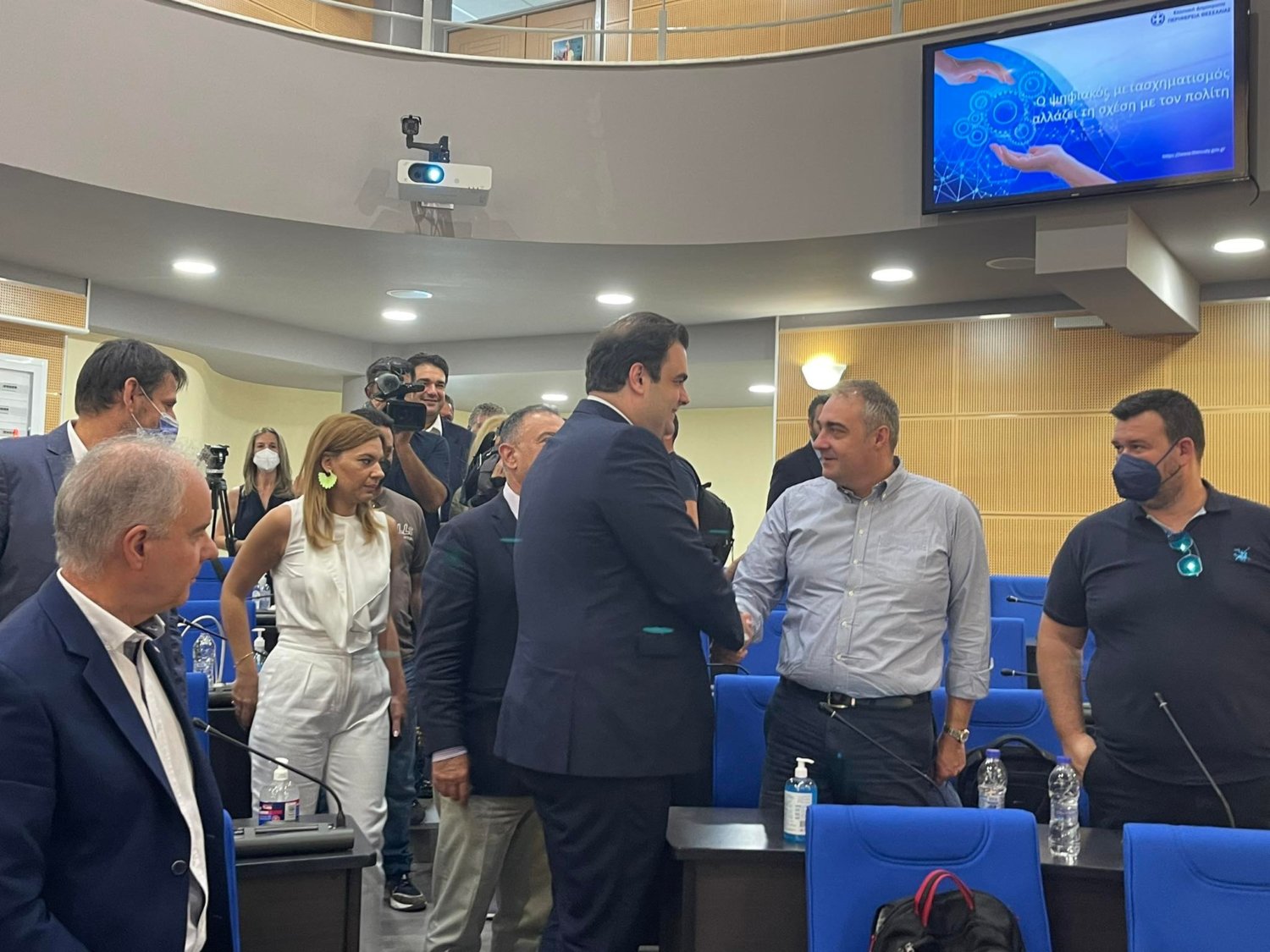 Στην έδρα της Περιφέρειας Θεσσαλίας βρίσκεται ο υπουργός Ψηφιακής Διακυβέρνησης Κυριάκος Πιερρακάκης, ο οποίος συνοδεύεται από τον υφυπουργό Θεόδωρο Λιβάνιο, όπου αρχικά είχε συνάντηση με τον περιφερειάρχη Κώστα Αγοραστό και στη συνέχεια ακολούθησε σύσκεψη με τους δημάρχους.