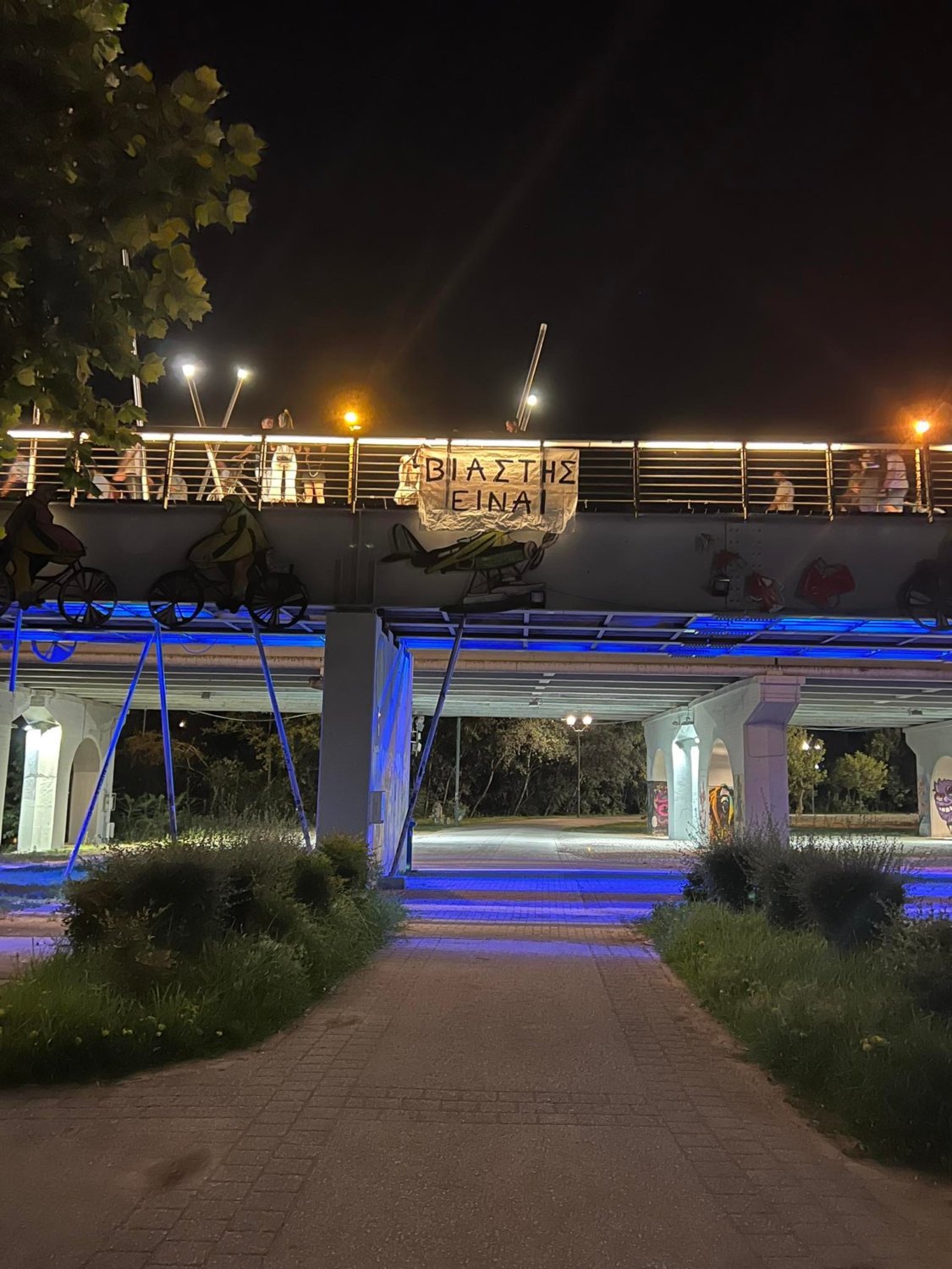 Το πανό κρέμασαν αργότερα και στη γέφυρα Αλκαζάρ.
