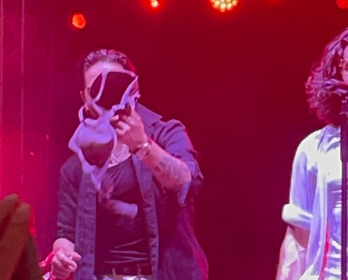 Μία θαυμάστρια του γκρουπ πέταξε τον στηθόδεσμό της στον Χρήστο Μάστορα, ο οποίος έριξε χαμόγελο και συνέχισε την εμφάνισή του…