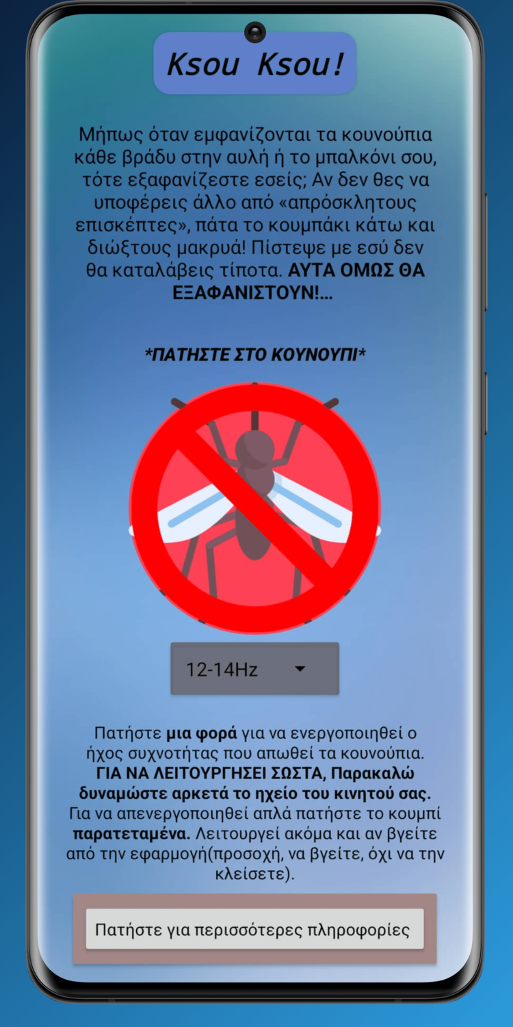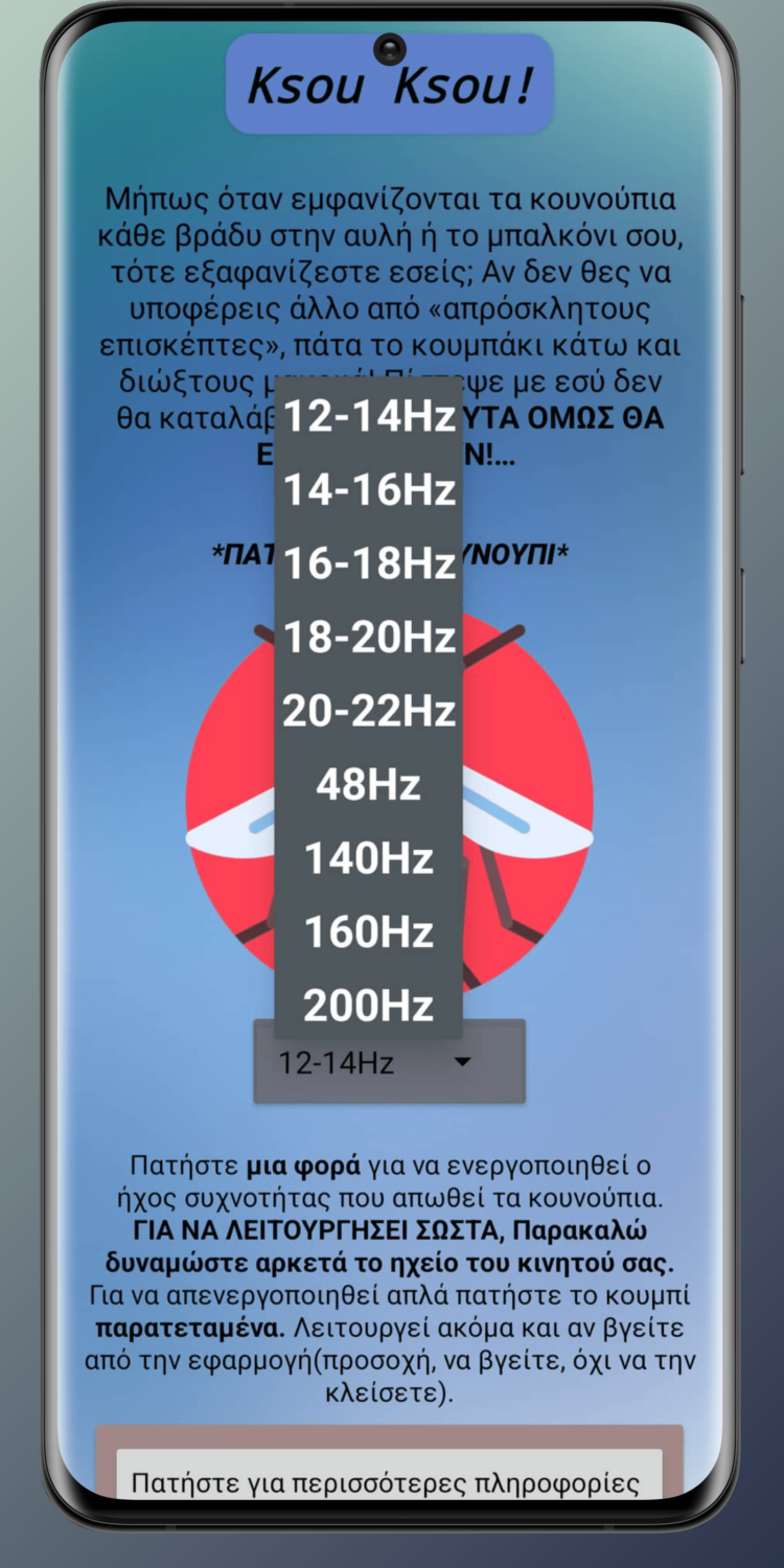 Ουσιαστικά η εφαρμογή παράγει ήχο από 12Hz έως 200Hz. Το δικό μας αυτί ίσως αντιληφθεί από τα 22Hz και πάνω αλλά παρόλα αυτά οι χαμηλότερες για εμάς συχνότητες είναι ιδιαίτερα ενοχλητικές για τα κουνούπια. Βέβαια στην Ελλάδα έχουμε περισσότερα από 60 είδη κουνουπιών οπότε μερικές φορές μπορεί να πέσουμε και έξω. Μην ξεχνάμε ότι ο τρόπος που θα τους επηρεάσει ο ήχος εξαρτάται και από την όρεξη τους(τα θηλυκά τσιμπάνε), από την περίοδο αναπαραγωγής καθώς και από την περιοχή. Παρόλα αυτά λειτουργεί στο μεγαλύτερο μέρος αυτών. Όλοι μπορούμε να διαθέτουμε ένα ηλεκτρονικό αντικουνουπικό και χωρίς να είναι επιβλαβές για το περιβάλλον. Μέσω της εφαρμογής ο χρήστης μπορεί να επιλέξει ανάμεσα από 5 διαφορετικά είδη συχνοτήτων.