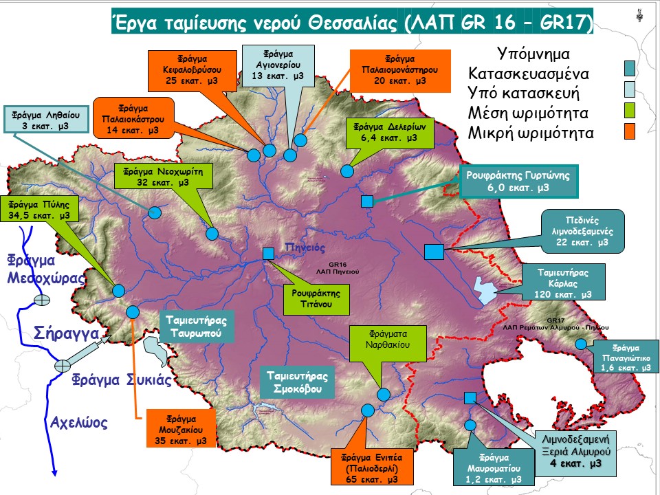 [Όσο για τα έργα, αν και καταγράφονται στα θετικά της σημερινής κυβέρνησης η σχετικά γρήγορη ωρίμανση και τελικά η ένταξη σε χρηματοδοτικά προγράμματα κάποιων αξιόλογων έργων (νέο σύγχρονο δίκτυο του ΤΟΕΒ Ταυρωπού / Καρδίτσα, ταμιευτήρας επί του Ενιπέα / Φάρσαλα και άλλα μικρότερα), οι συνθήκες που καθορίζουν την αρνητική πορεία του υδατικού προβλήματος στη Θεσσαλία, παραμένουν αναλλοίωτες].