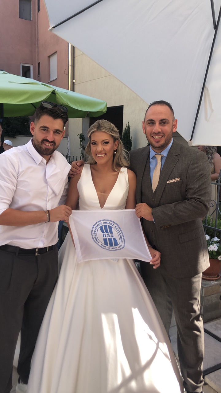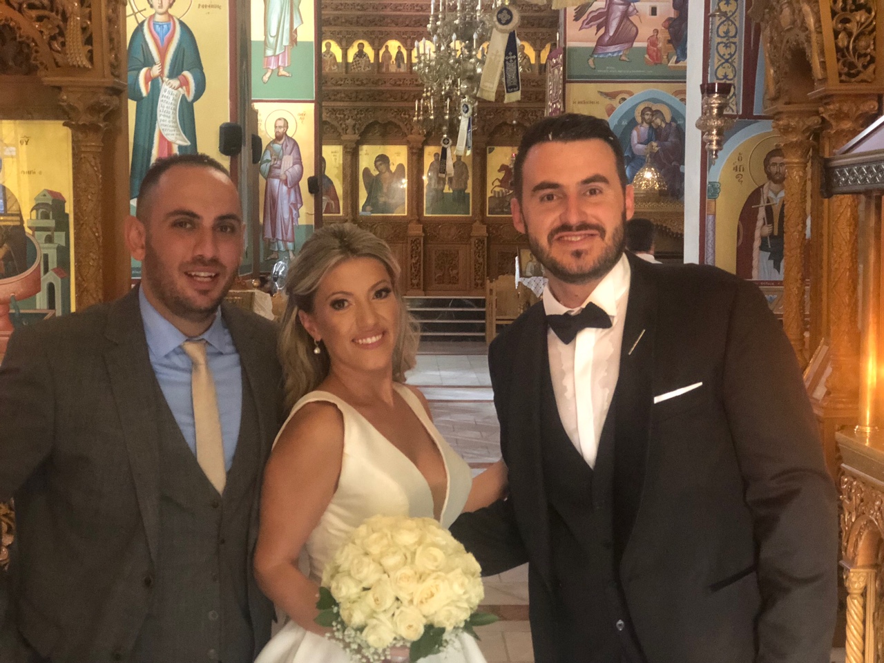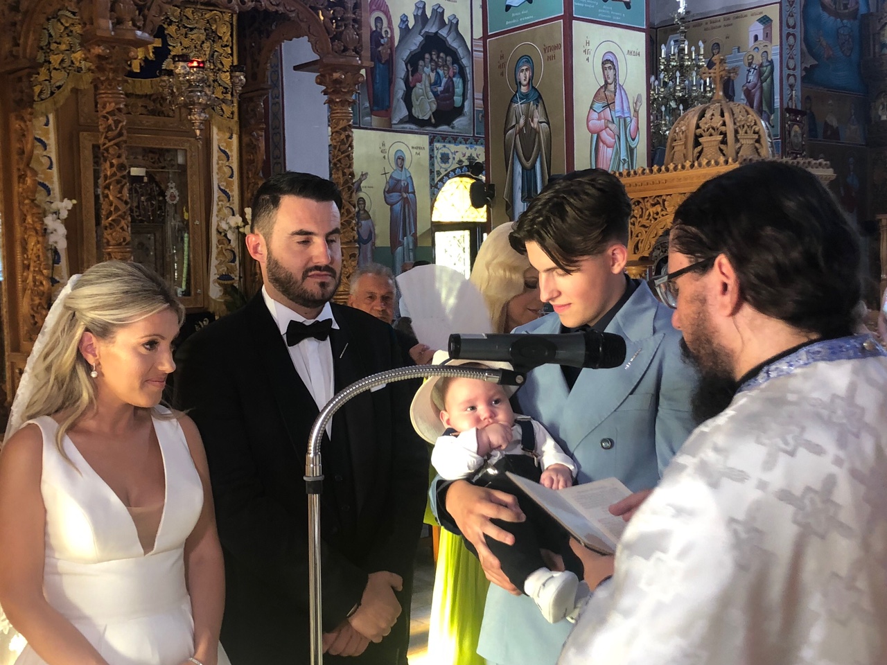 Γάμος και βάφτιση τελέστηκαν στον Ιερό Ναό Ζωοδόχου Πηγής στη Λάρισα, παρουσία πολλών συγγενών και φίλων του ζευγαριού και των οικογενειών τους.