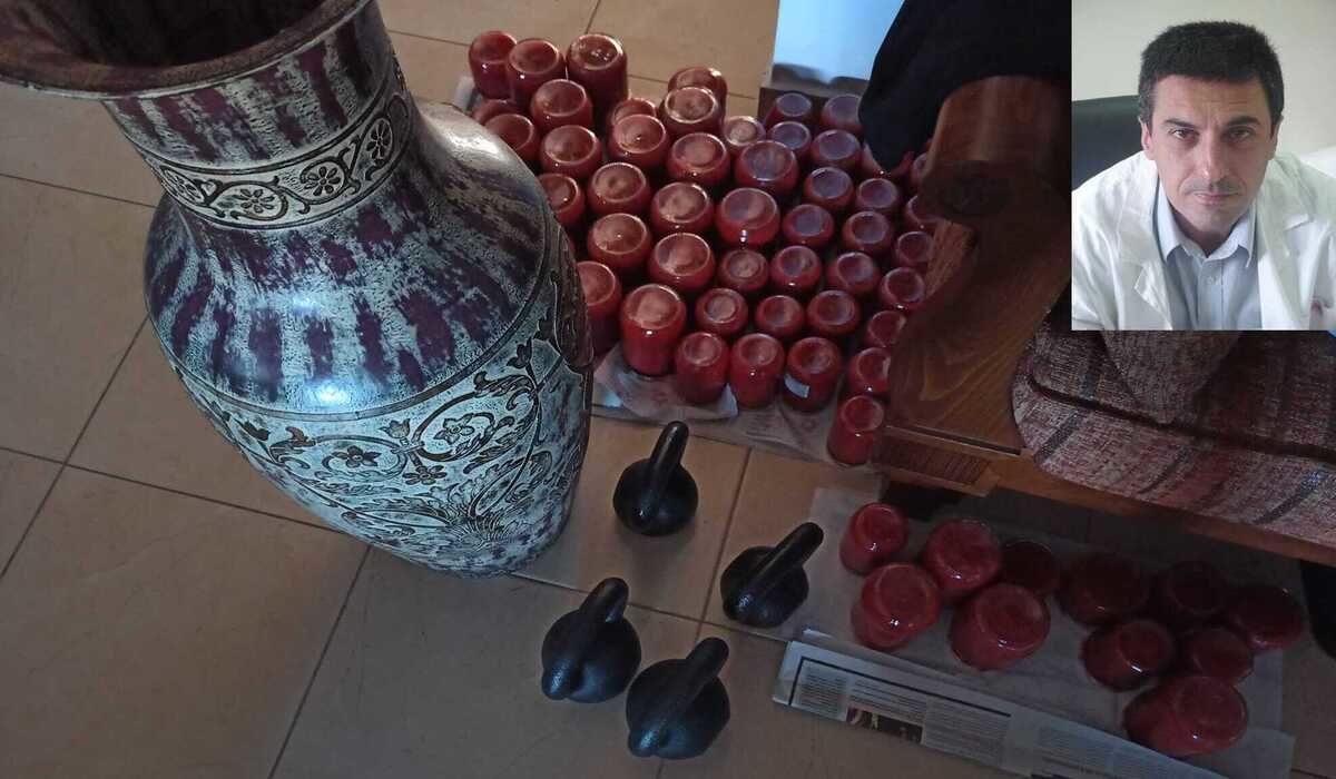 «Σάλτσα ντομάτας από ντομάτα και βιομηχανικό της περιοχής (νέο Περιβόλι). Περίπου 50 κιλά. Φτιάχτηκε χθες και τώρα τα βαζάκια αναποδογυρισμένα για λίγες μέρες για να σφίξει το πώμα.