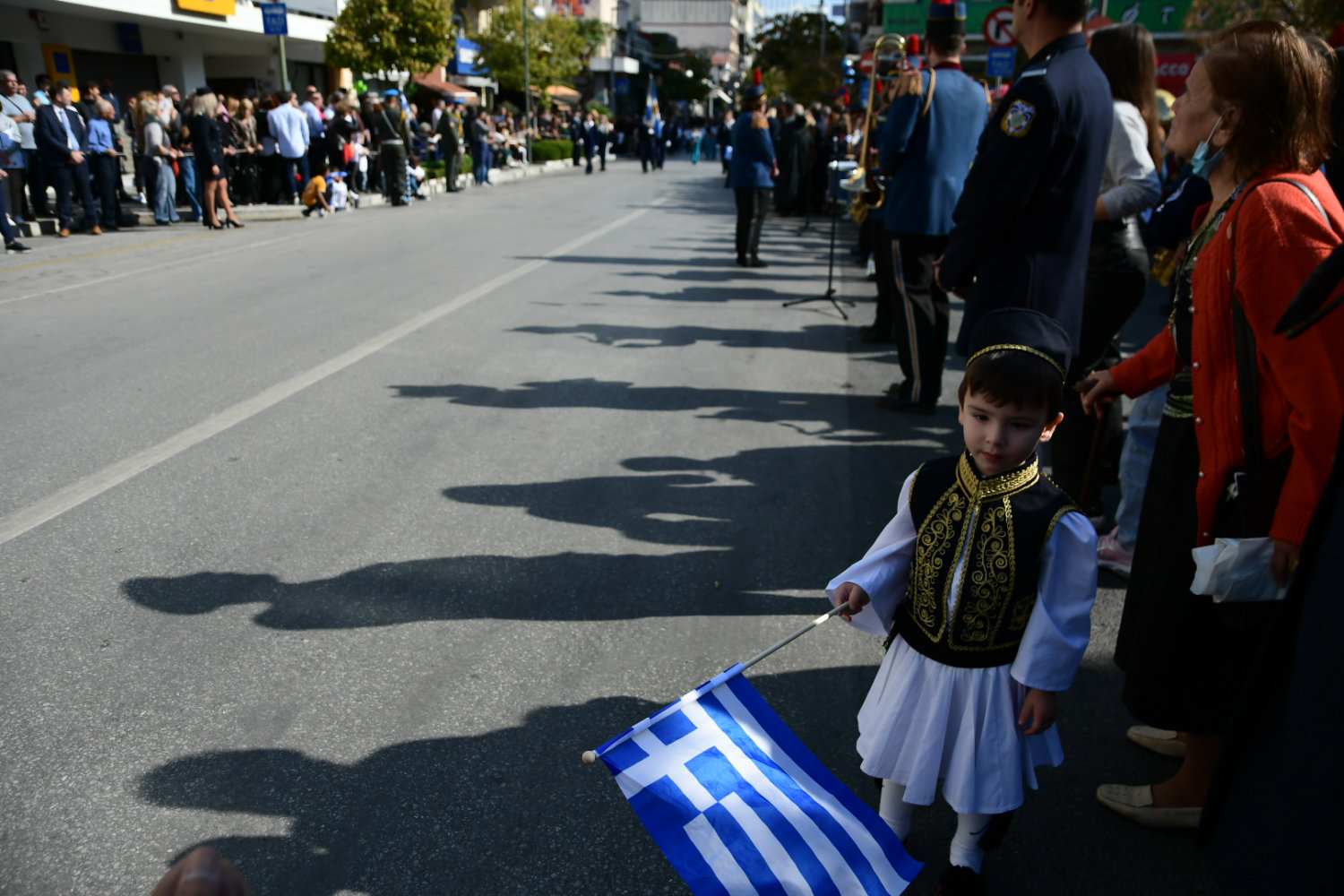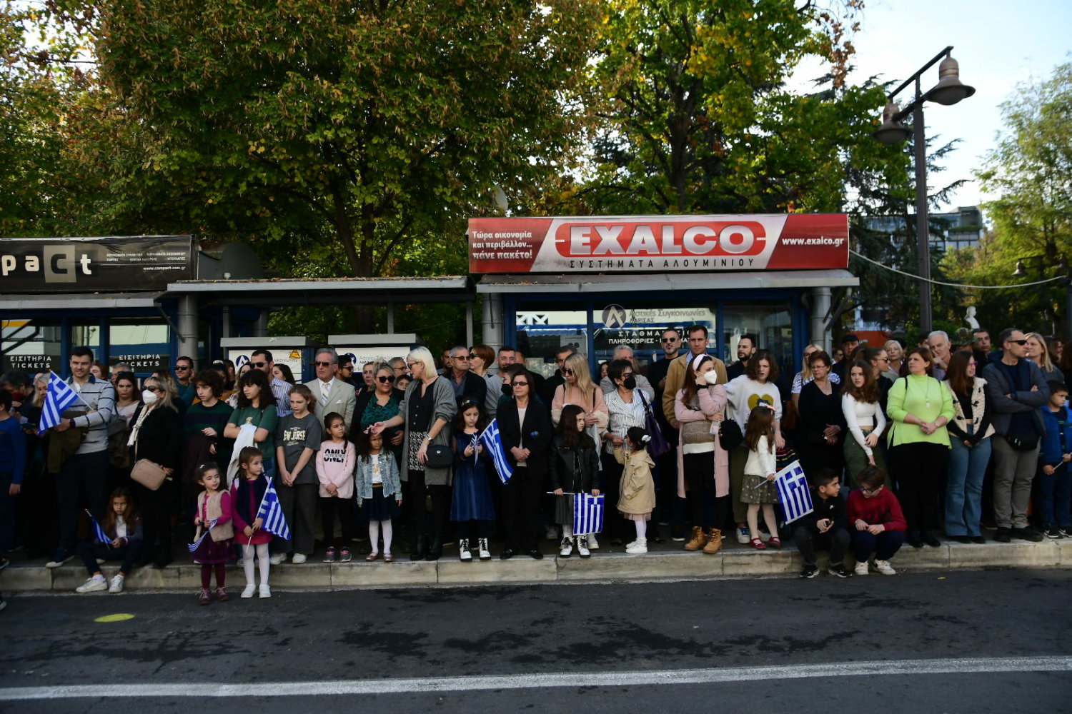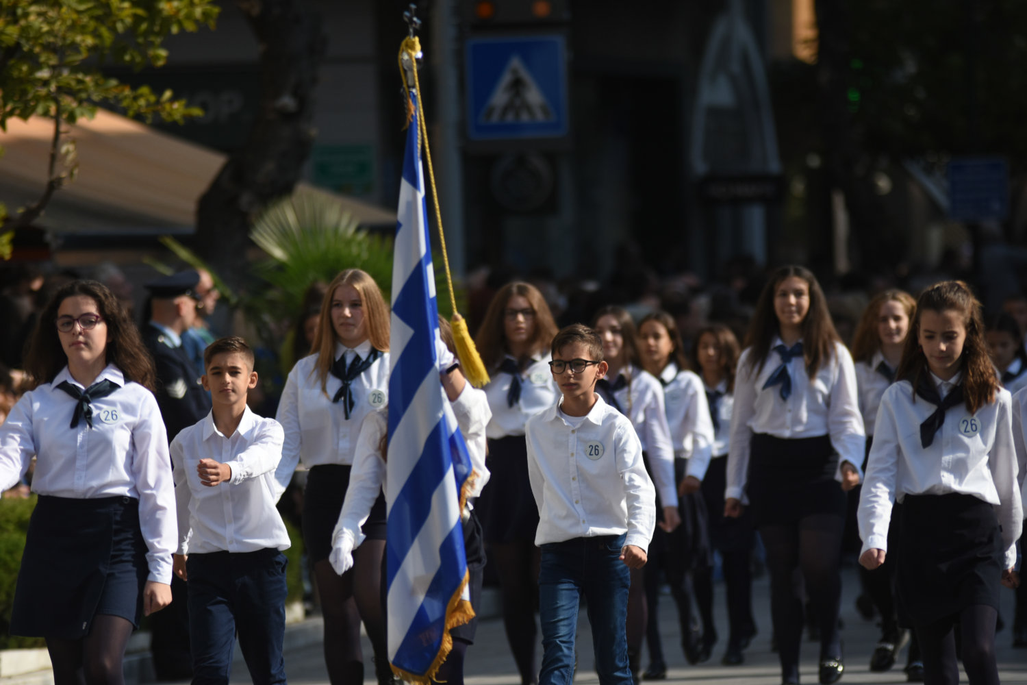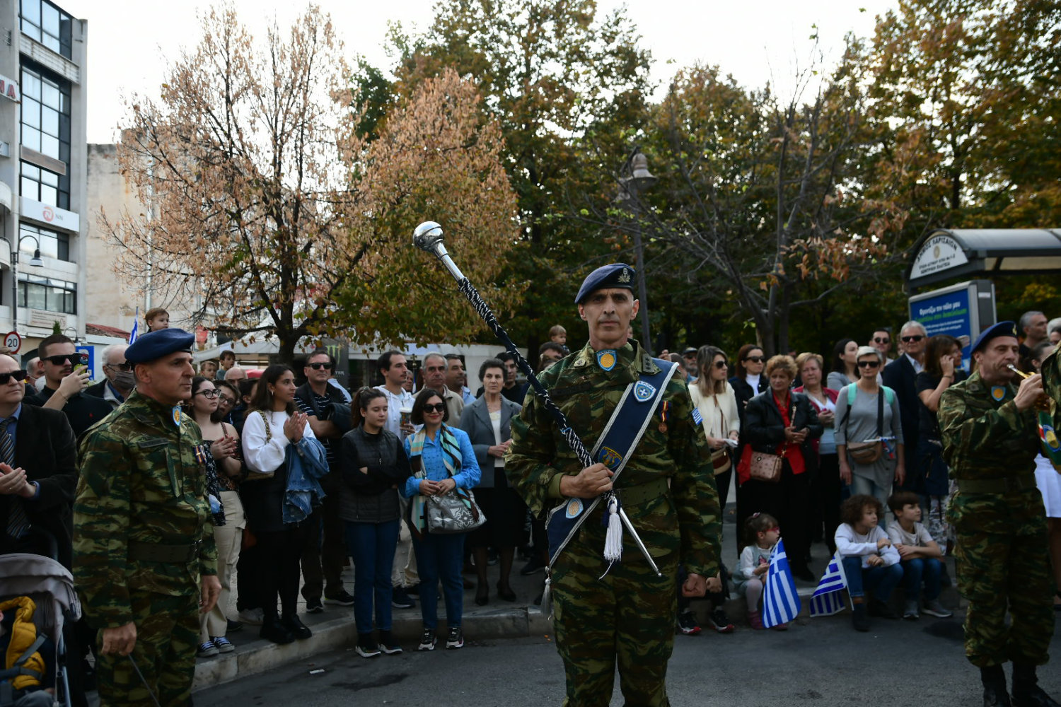 Πλήθη πολιτών βρέθηκαν από νωρίς στα πεζοδρόμια – κατά μήκος της διαδρομής – ώστε να χειροκροτήσουν μαθητές, αντιπροσωπευτικά τμήματα συλλόγων, φορέων, όπως και τις Ένοπλες Δυνάμεις.
