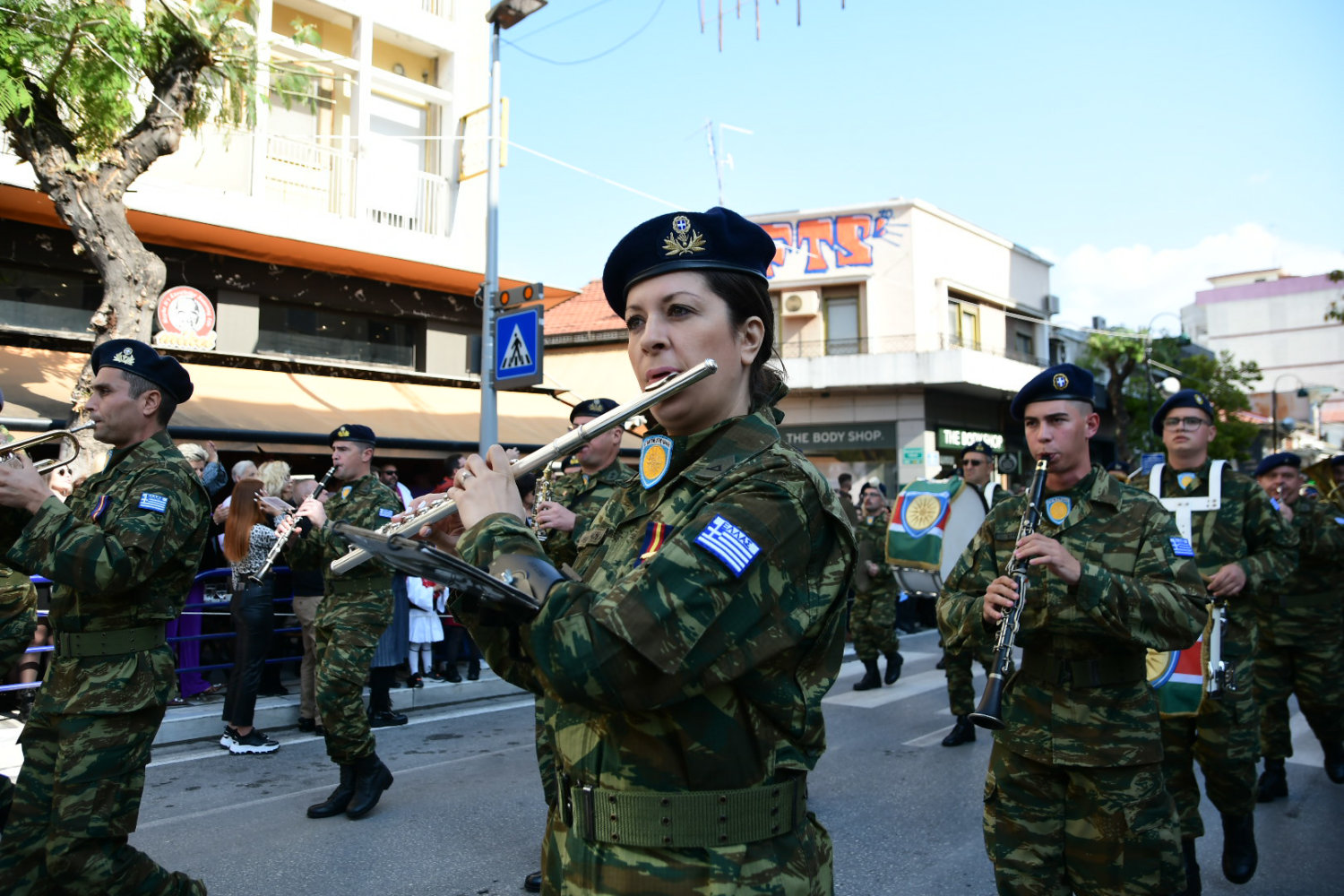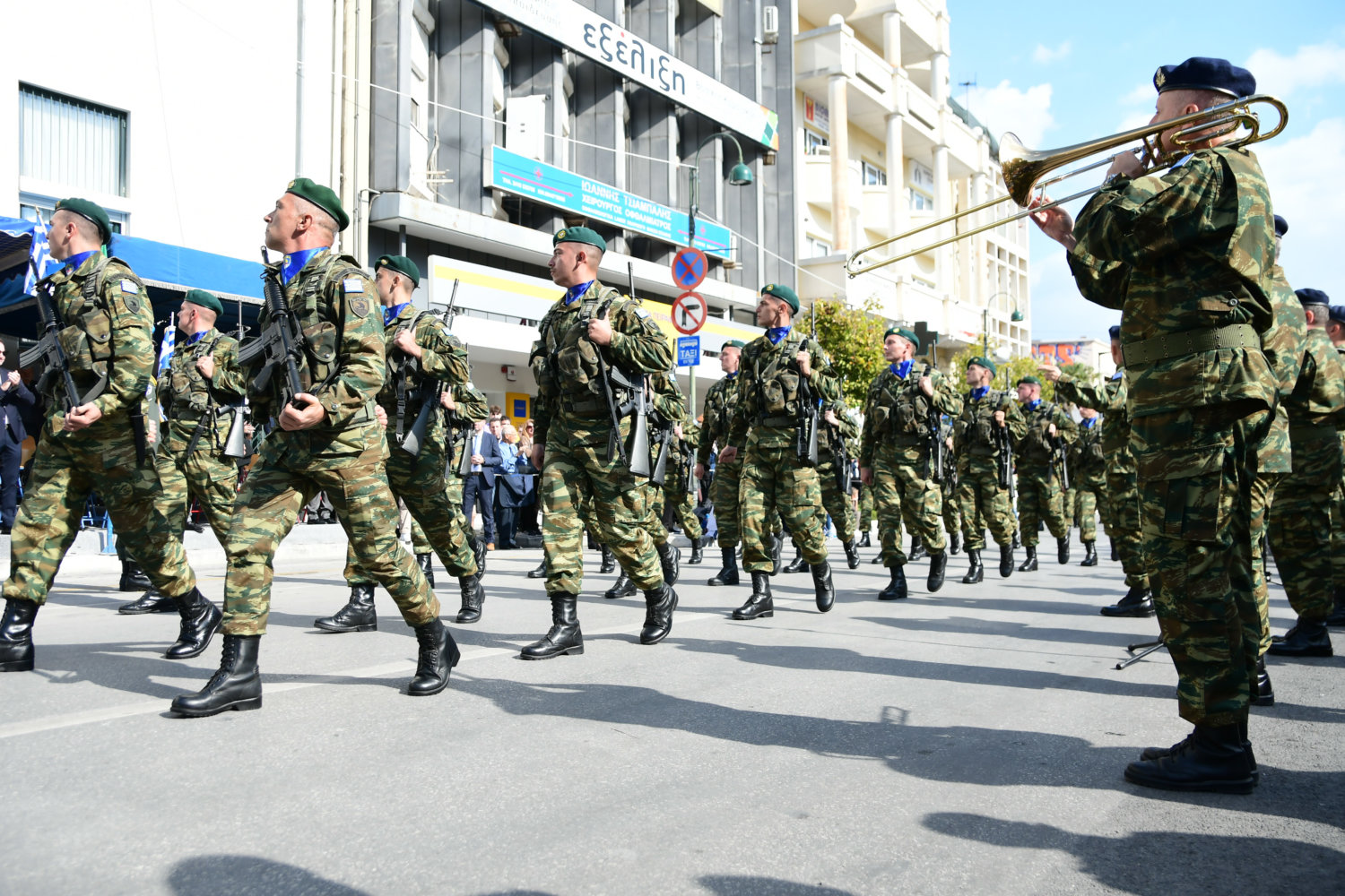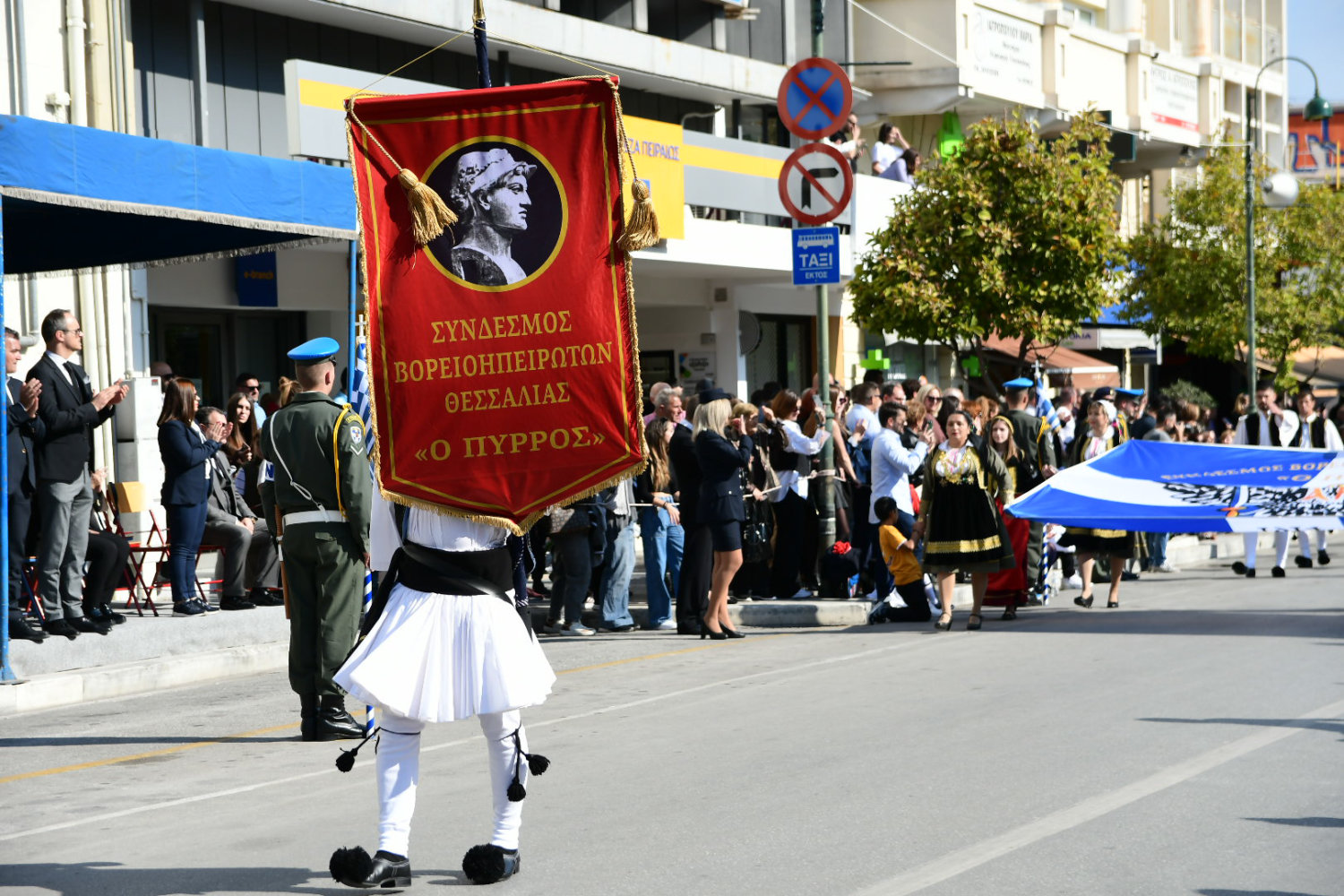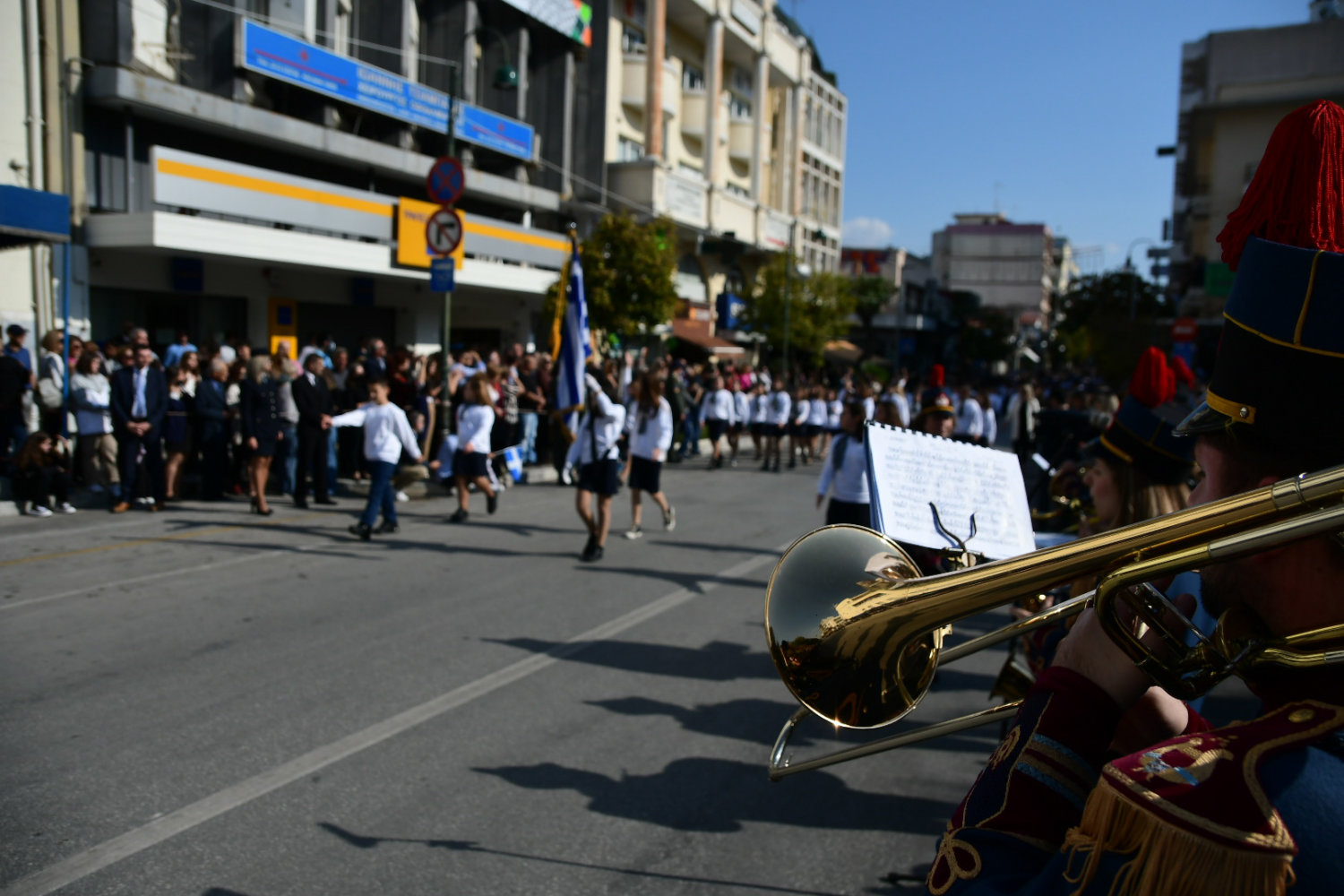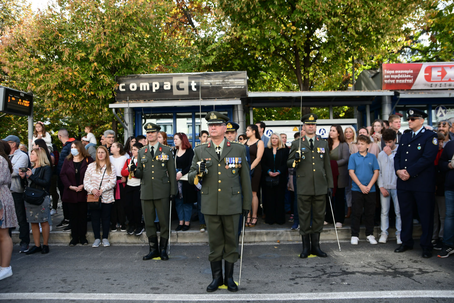 Πλήθη πολιτών βρέθηκαν από νωρίς στα πεζοδρόμια – κατά μήκος της διαδρομής – ώστε να χειροκροτήσουν μαθητές, αντιπροσωπευτικά τμήματα συλλόγων, φορέων, όπως και τις Ένοπλες Δυνάμεις.
